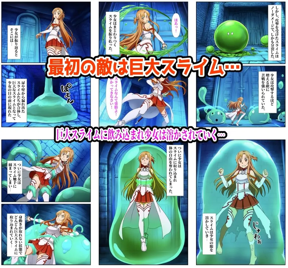 自信満々に最深部を目指すけど、最初の敵はぬるぬる巨大スライムで飲み込まれて全身溶かされながら子宮まで粘液種付けされて理性溶解しちゃうよね