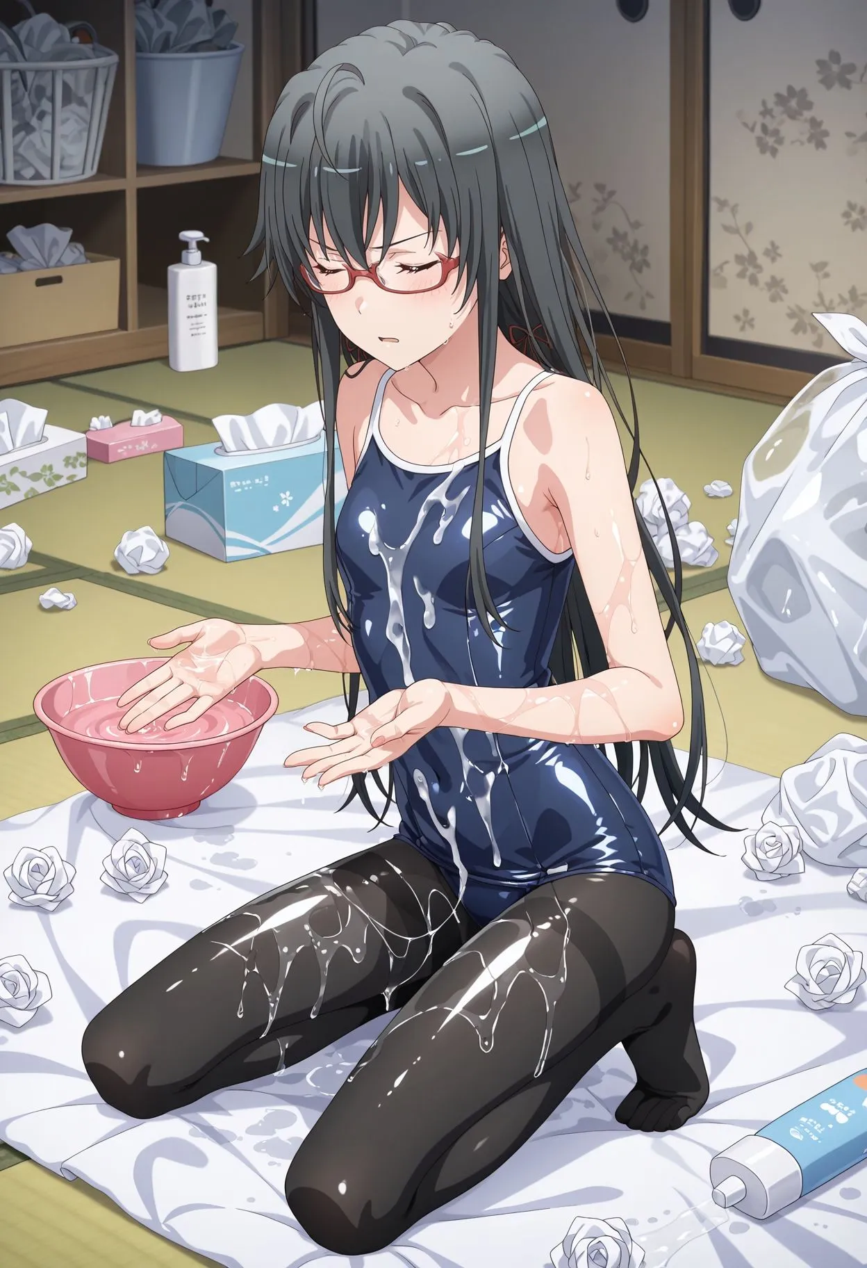 スクール水着に黒タイツ、ブルーライトカット眼鏡に着替えさせられて、口胸脚つま先の全身でローション塗れ奉仕よ