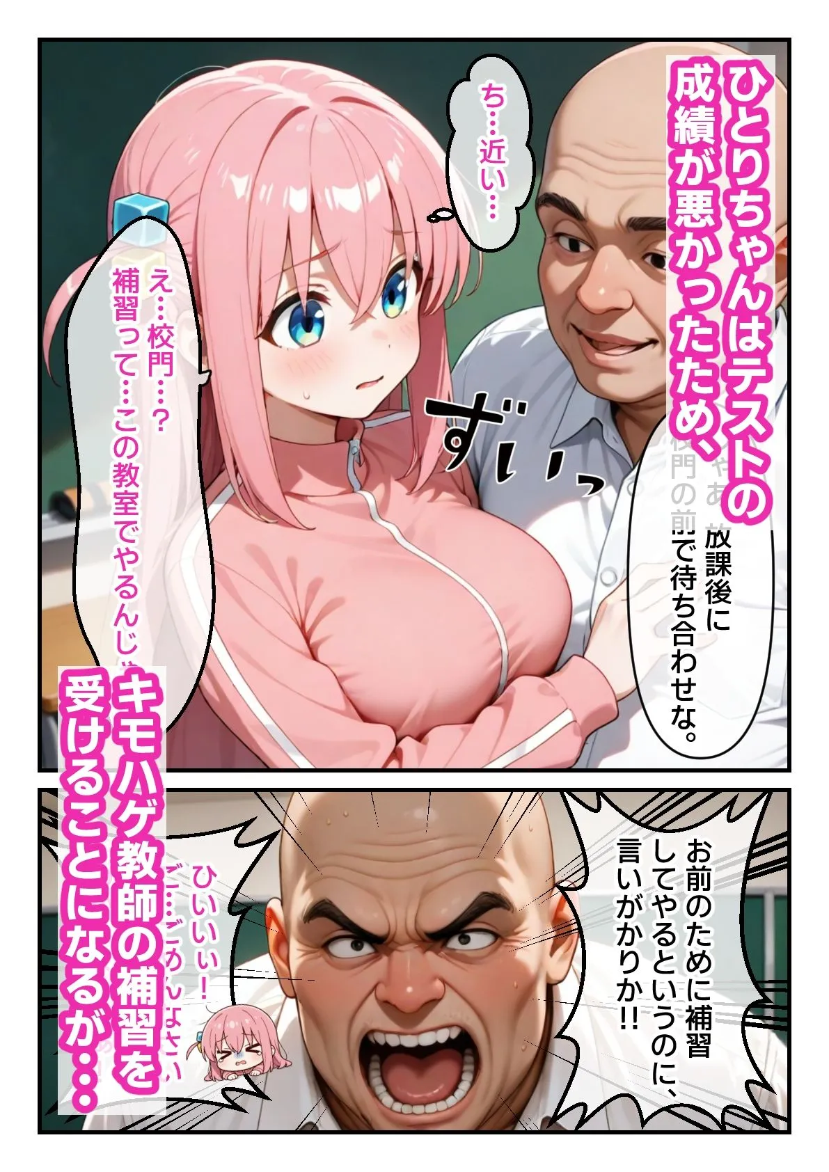 ある日、ひとりちゃんはテストの成績が悪くて補習を受けることに。本来教室のはずが教師の自宅に来るように言われて、友達から怪しいって止められるんだけど信じてついて行っちゃうんだよ