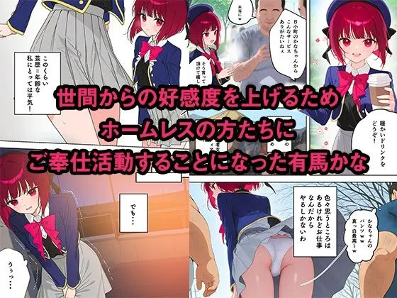 あかねこの作品は有馬かなが世間からの好感度を上げるためホームレスの方たちにご奉仕活動する話だよ
