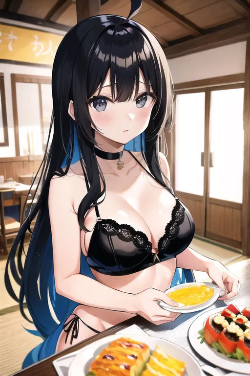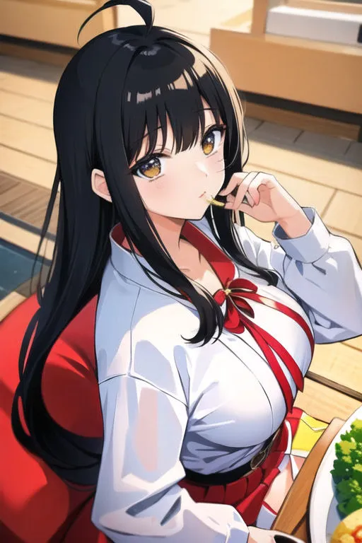 五十鈴華が様々な衣装で食事する様子を出力したんだ
