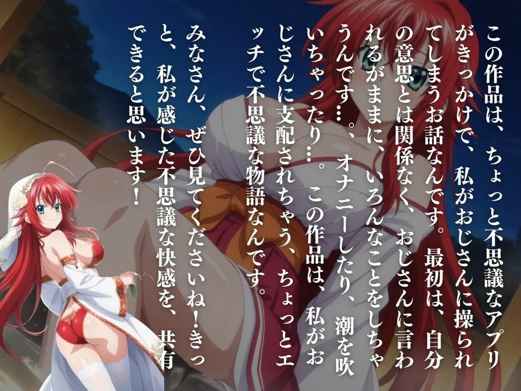 あかねこの作品は『紅の契約-アプリに囚われた姫-強き姫、堕ちる。』で、リリス・グレモリーが謎のおじさんのアプリに囚われて堕ちていく話だよ