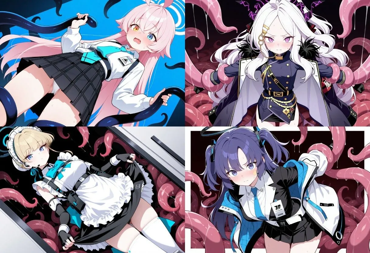 ブル○カの生徒28人が触手に凌○されるイラスト集です。各キャラ17〜18枚収録★収録キャラクターホシノ/シロコ/ヒナ/アコ/イオリ/アル/カヨコアスナ/トキ/リオ/ユウカ/ノア/モモイ/アリスミカ/セイア/ハナコ/マリー/ハスミ/コハル/カズサキサキ/ミヤコ/カンナ/サオリ/ノゾミ/ヒカリ/アロナ★モデルのバージョンアップと解像度アップにより、過去作品と比べて画質と作画クオリティがアップしました。特に美麗に描きこまれた乳輪やアナルの表現をぜひご覧ください。解像度1248×1824pix(横長)※本作品は画像生成AIの(StableDiffusion)で作成されたAIイラスト集です