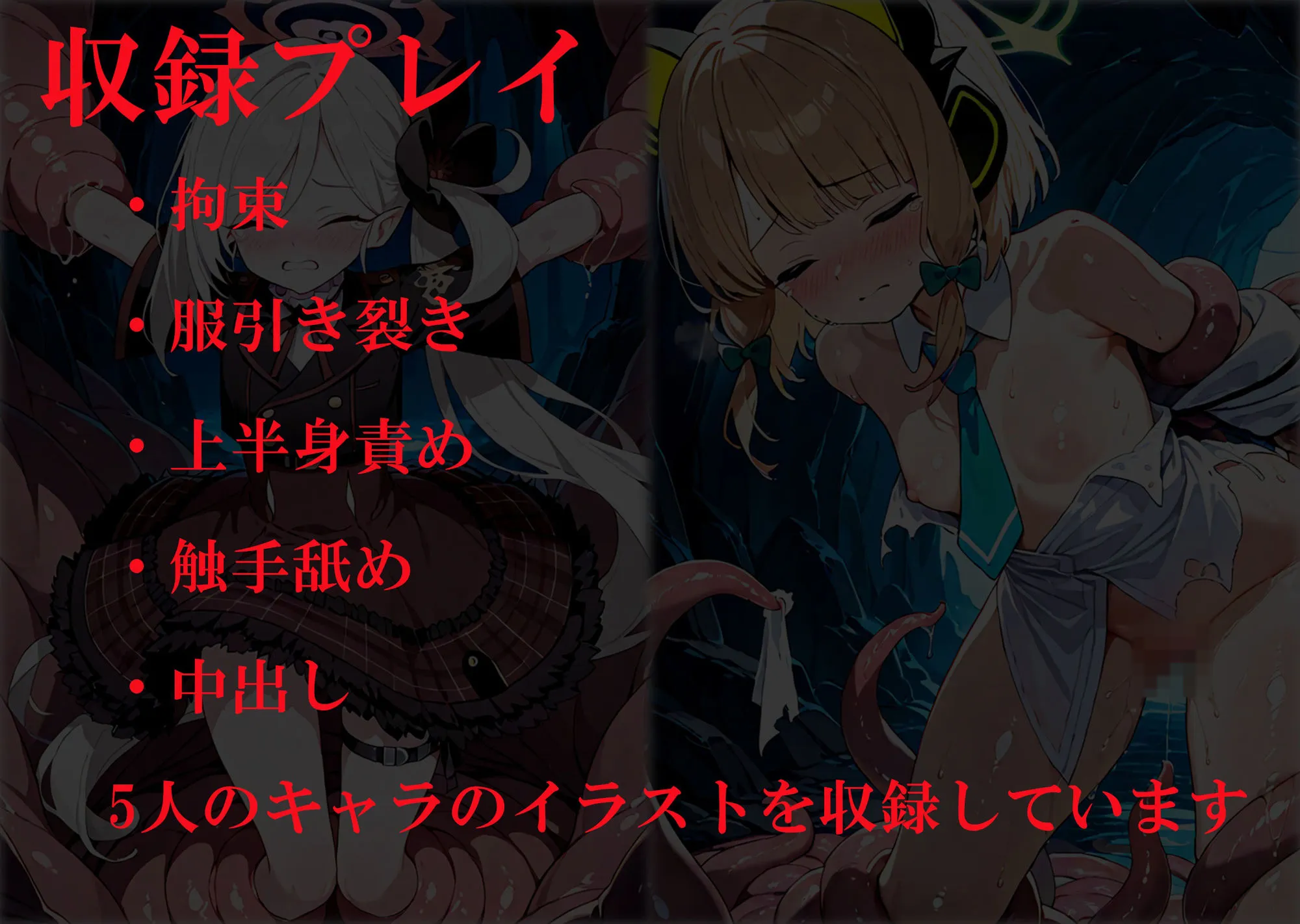 この作品はブロスタアーカイブ、Blue Archiveのヒロインたちが触手に犯されるエロCG集だよ