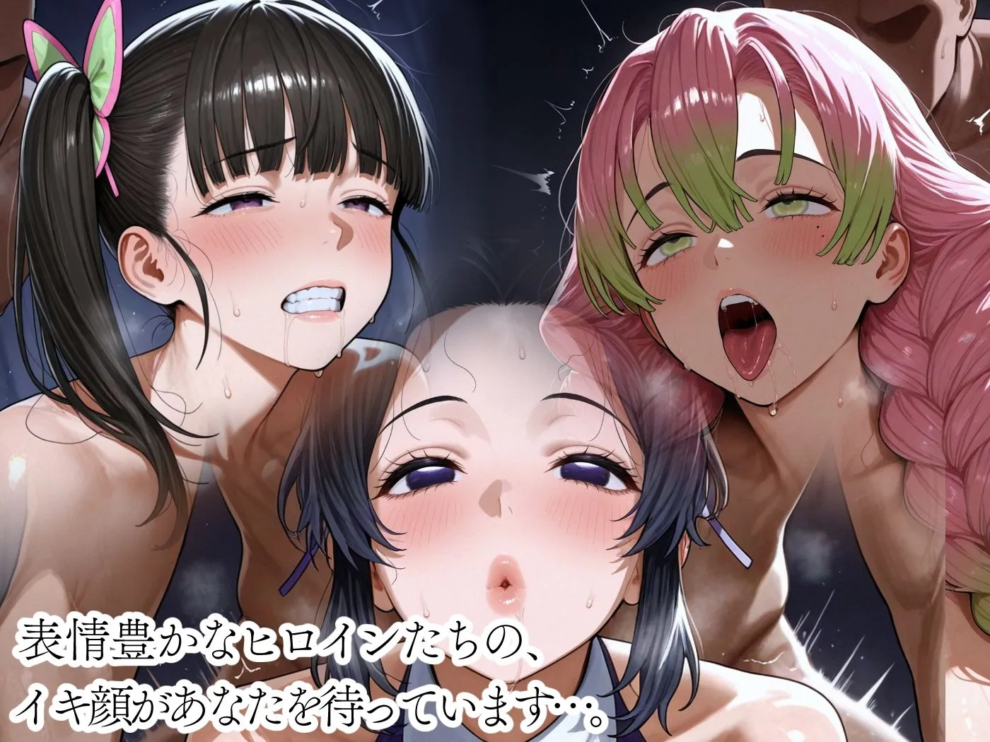 人気ヒロインの甘露寺蜜璃、胡蝶しのぶ、栗花落カナヲが登場して、おじさんたちのセックス係を任命されてるんだ