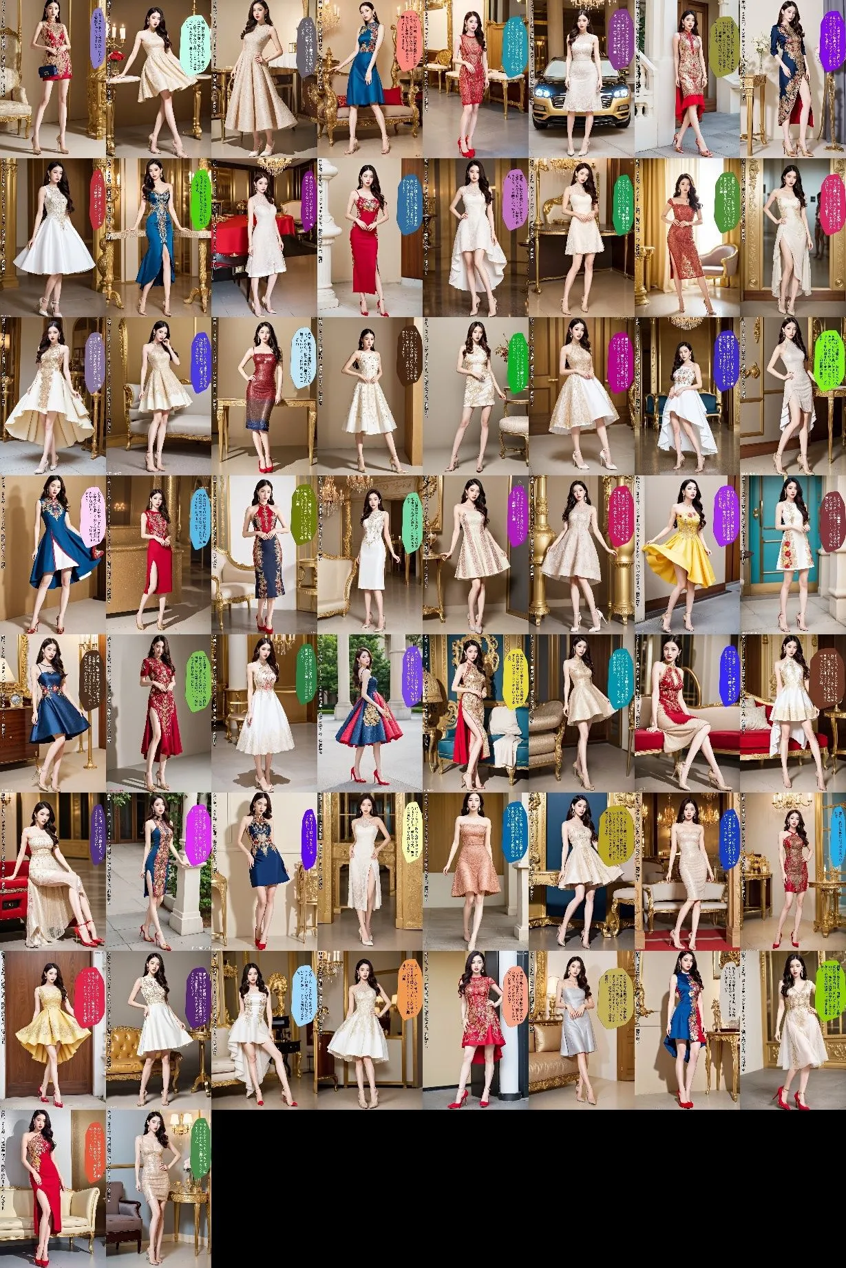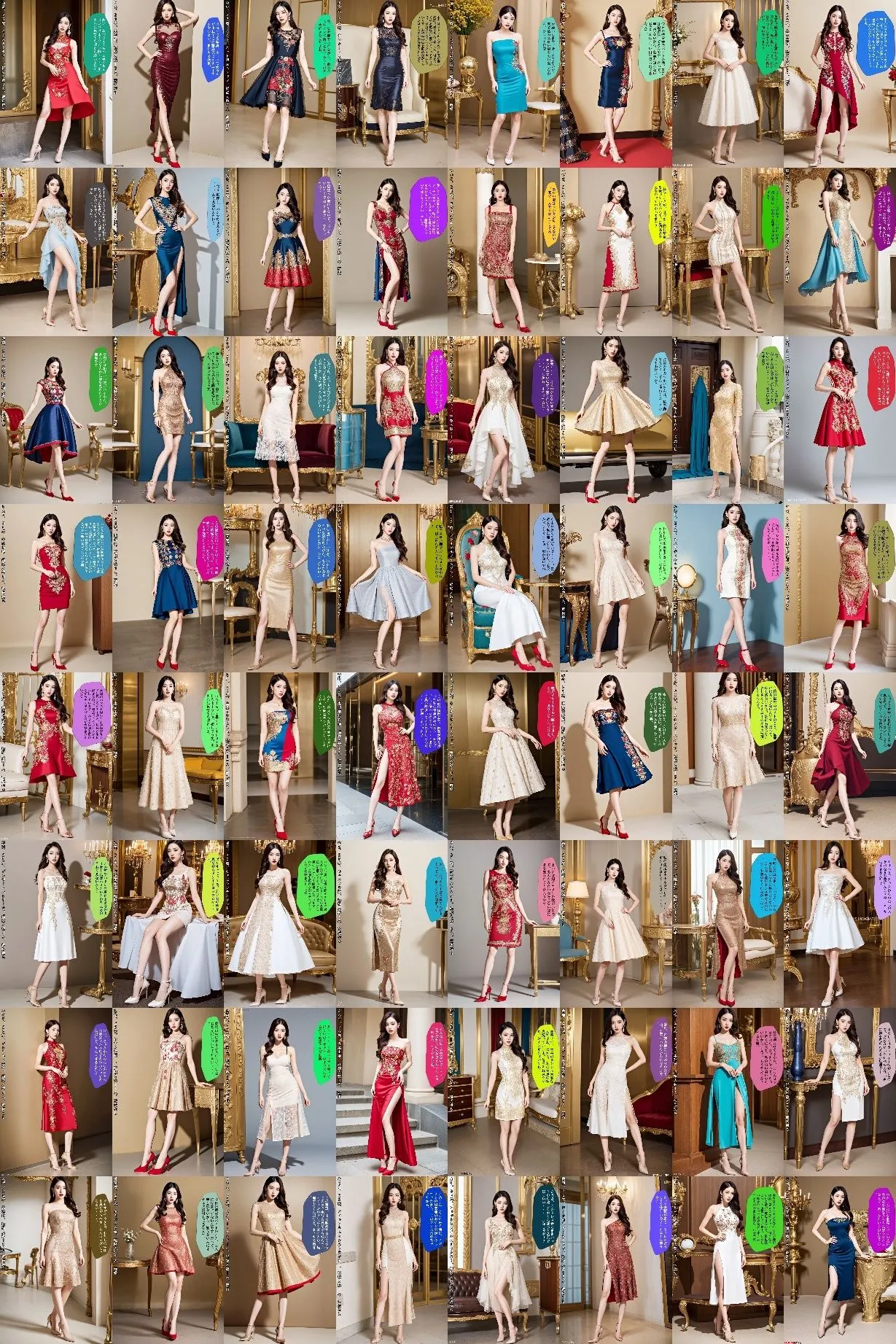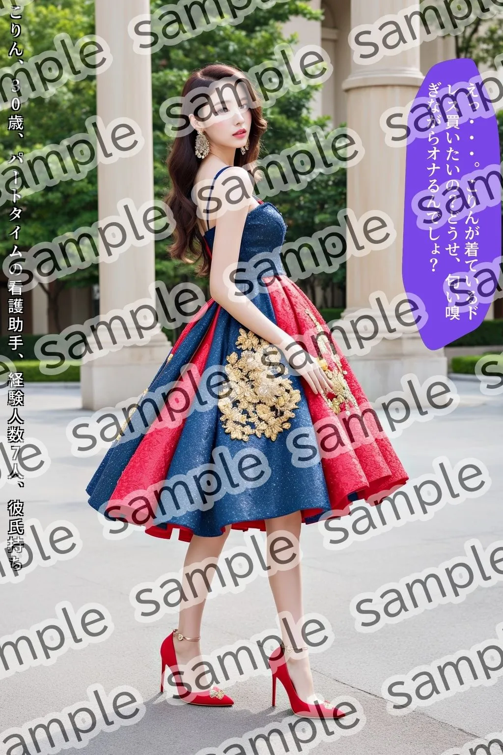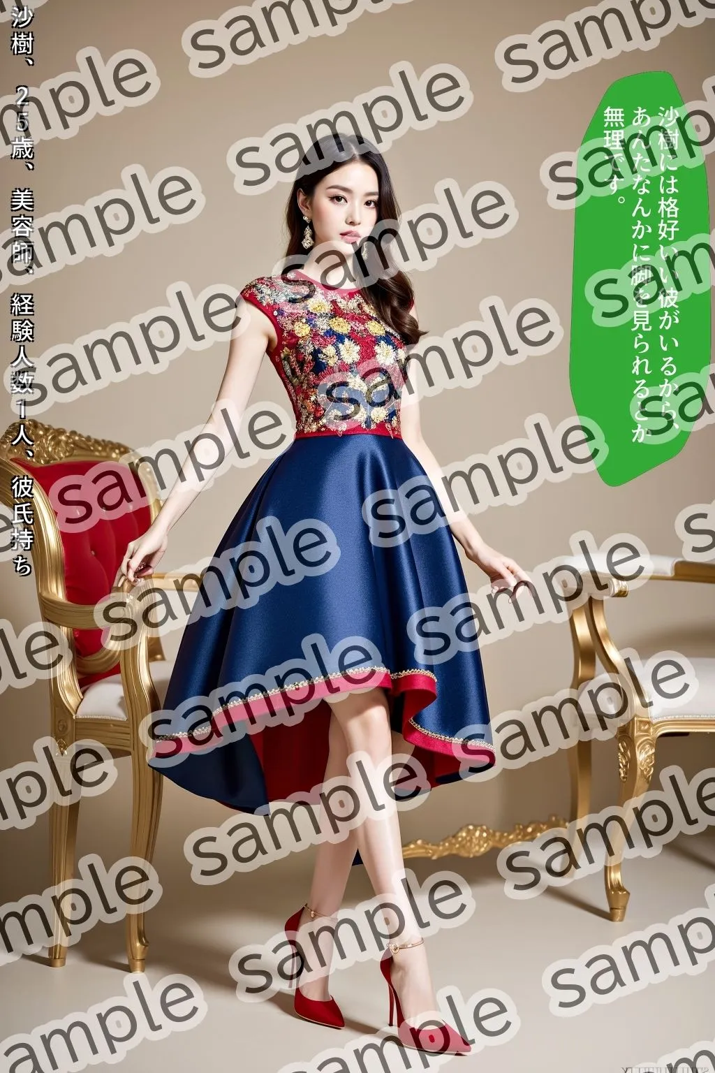 あかね刺繍の施された豪華なドレスを生足&ハイヒールのパンプスで着こなす黒髪美女の写真集の第二弾だよ