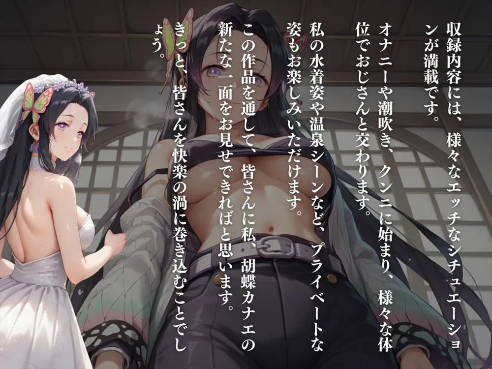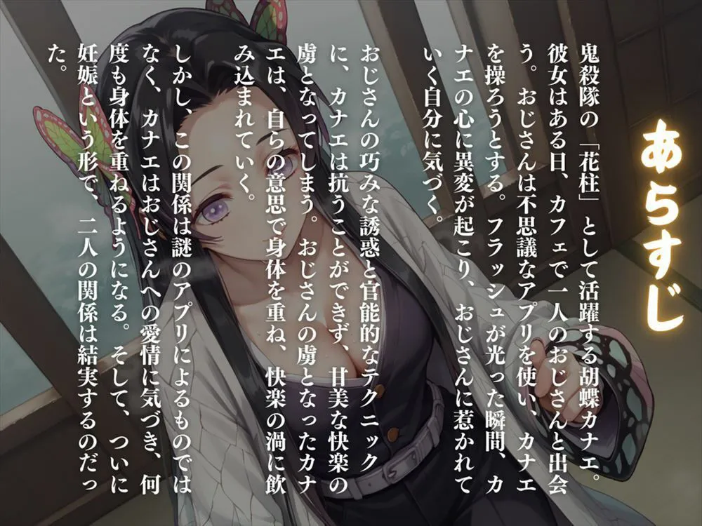 この作品は『花の宴、淫らな夜〜戦いの裏で、花柱は快楽に溺れる〜』で、『鬼滅の刃』より胡蝶カナエの魅力が詰まったCG集だよ