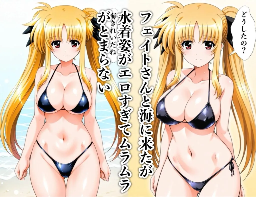 フェイトさんと海に来たんだけど、水着姿がエロすぎるよ