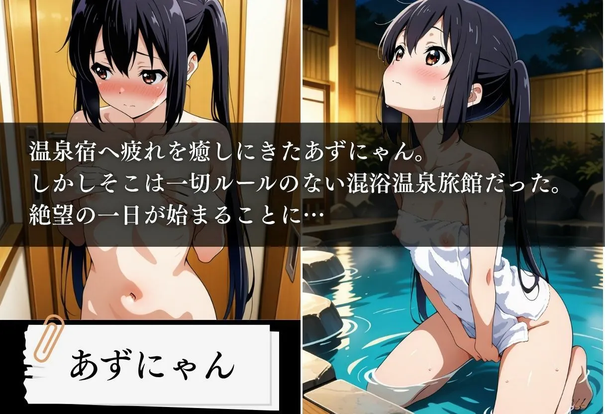 ※サンプル画像は本編より荒く、モザイクも大きくなっております。※アナルは本編無修正となります。ここはヒロインに欲望を存分に浴びせられる特別な温泉宿。今回のターゲットはあずにゃん。脱衣所で異様な視線を感じるもそのまま入浴するが、ルール無しの温泉で好き放題中出しされる。部屋に逃げるがそこでも脳や身体が壊れるほどに中出しをされるヒロイン。最終的に壊れた彼女は膣内から滴る精液に歓びを覚えてしまう。【シーン】温泉編・乳揉み・緊縛・イラマチオ・口内射精・騎乗位・バック・中出し和室編・オナニー・玩具プレイ・放尿・騎乗位・バック・正常位・片足上げ挿入・種付けプレス・中出し・複数人中出し・アヘ顔※この作品はAIを利用して作成したものです。※StableDiffusionを使用して生成しております※AIで生成された画像は、実在の人物・キャラクターに類似している場合がありますが、それは偶然の一致であり、一切関係がありません。※技術的な制約やAIの学習データによって、細部に破綻や不自然さが含まれる場合があります。購入前に、そのことを理解し、同意した上で購入を検討していただくことをお願いいたします。※商品は予告なく販売を中止することがあります。予めご了承ください。※購入後の取り扱いに不備があった場合こちらは一切責任を負いません。※商用目的での利用・第三者への譲渡・転載等が発見された際には法的処置をとらせていただき、損害賠償請求を致します。※被写体は全て成人しておりコスチュームプレイの衣装です。