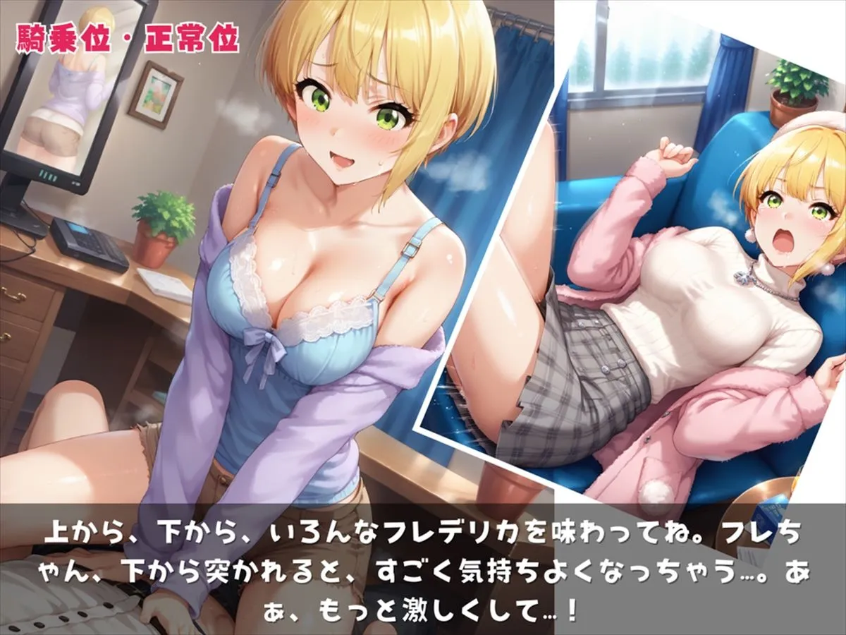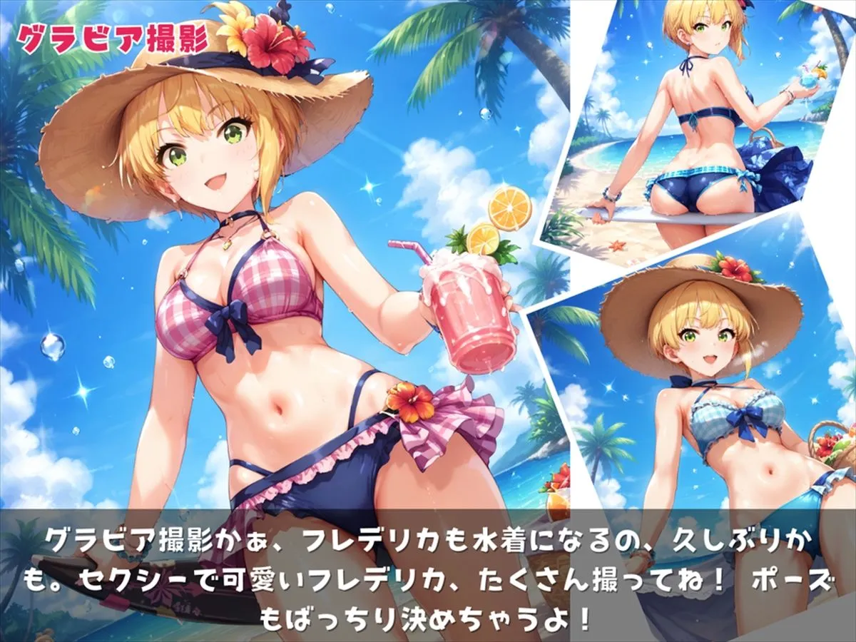 あかねこの作品は『フレデリカの秘密〜ハーフアイドルの知られざるセクシーな素顔〜』で、フランスと日本のハーフ、宮本フレデリカのCG集だよ