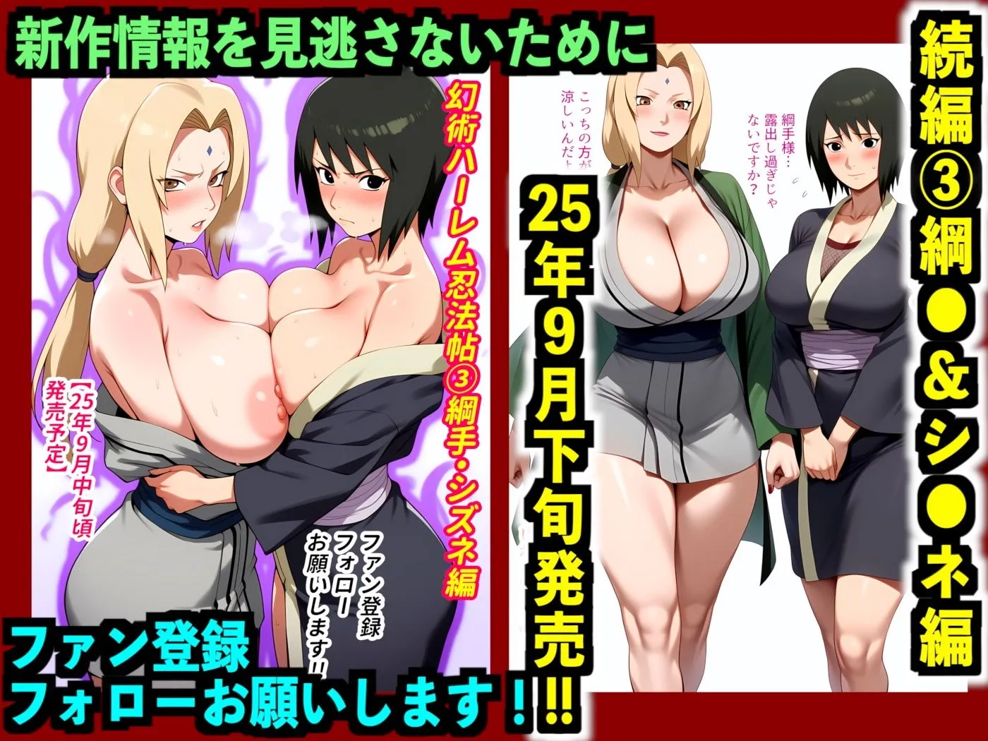 ーーーーーーーーーーーーーーーーーーーーーー★冒頭9Pまでの無料体験版あり!★PCでダウンロードできます。スマホの場合は、ブラウザをPC版サイト表示にするとDL可能です。ーーーーーーーーーーーーーーーーーーーーーーフルカラー本篇jpeg58枚(+αセリフなしver.58枚)次回作告知jpeg3枚(+αセリフなしver.3枚)※PDF同梱ーーーーーーーーーーーーーーーーーーーーーー★【ストーリー】★中年童貞の俺は「最強の幻術」を操り、さらなる獲物を狙う。次なる標的は、木の葉隠れの里で名を馳せるくノ一――春野サ●ラと山中い●。気丈に振る舞う二人も、幻術の力を前に抗うことはできない。心は必死に拒もうとするが、肉体は快楽を刻まれ、汗と愛液に濡れ乱れていく…。しかし淫らな宴はそれだけでは終わらない。前作で陥落したヒ●タとハ●ビが現れ、淫欲の輪へと加わる。かつては気高く凛とした彼女たちも、今では肉欲に染まりきった牝へと堕ち、サ●ラとい●を淫らな奈落へ誘うのだった。「心は抗えぬ…体はもっと欲しがる…」術に操られ、女たちは互いに絡み合い、俺の欲望を受け入れていく――。禁断の幻術が紡ぐ背徳の宴。四人の女忍が淫らに咲き乱れる、終わりなき肉欲の物語が幕を開ける。ーーーーーーーーーーーーーーーーーーーーーー★【本作品には以下のシーンが含まれております】★3Pアナル野外プレイ、野外放尿(春野サ●ラ山中●の)、複数プレイ、その他騎乗位、パイズリ、中出しなど※本作品は軽度のスカ要素(女性キャラの放尿、主人公が女性キャラの体に放尿)が含まれますーーーーーーーーーーーーーーーーーーーーーー★【注意】★・ヒロインの心は催●の力ではなく、主人公とのセックスで堕ちていきます。・本作品では全キャラクターを巨乳に変更しています。・本作品は基本的に1ページ1コマとなっております。・本作品は画像生成AIを使用しております。ーーーーーーーーーーーーーーーーーーーーーー幻術ハーレム忍法帖3綱●・シ●ネ編【2025年9月下旬発売予定】新作情報を見逃さないためにファン登録・フォローお願いします!※登場キャラは変更する可能性があります。