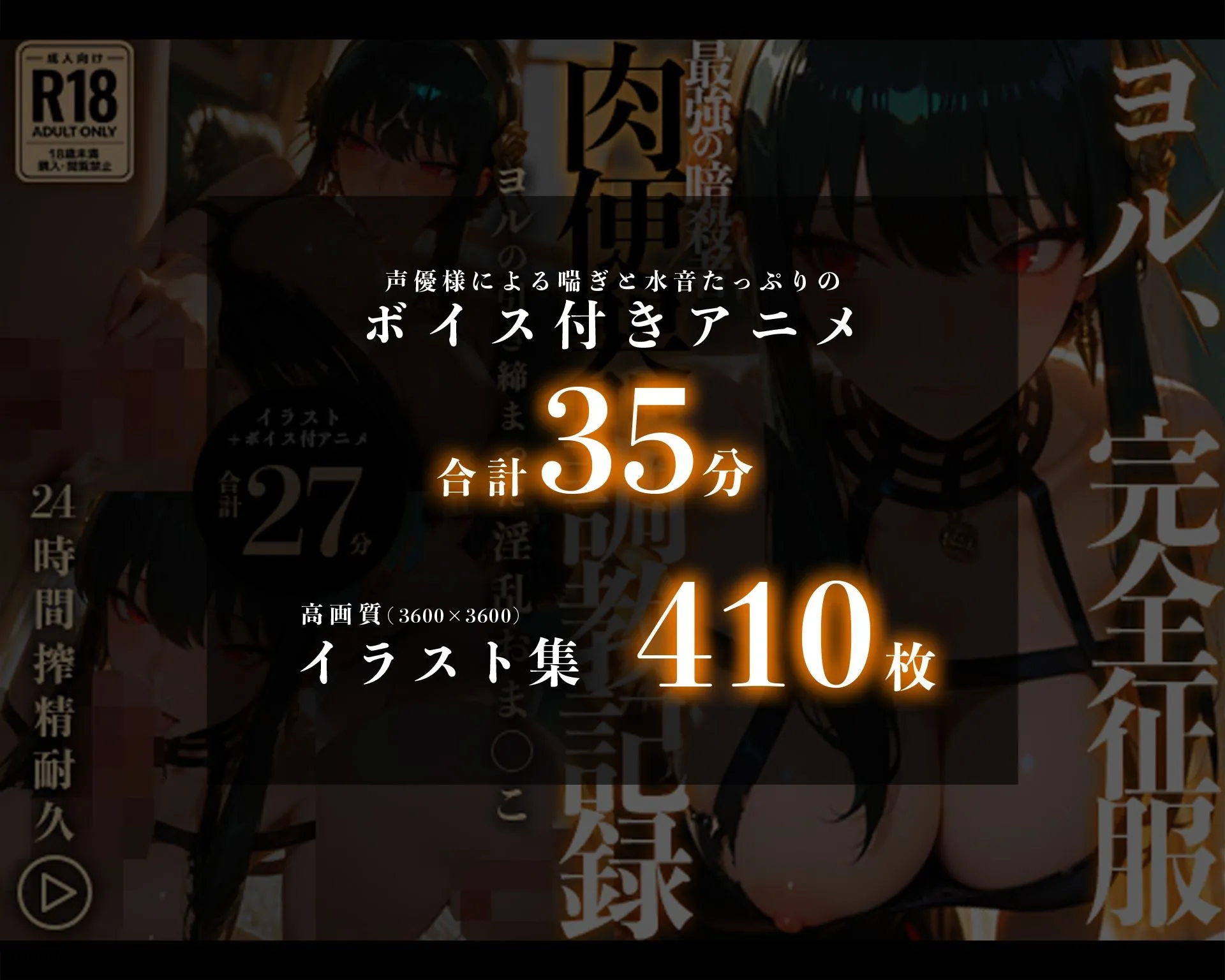 【イラスト+アニメ付き】ヨル、完全征服!最強暗殺者の肉便器調教記録〜ヨルの引き締まった淫乱おま●こ24時間搾精耐久〜