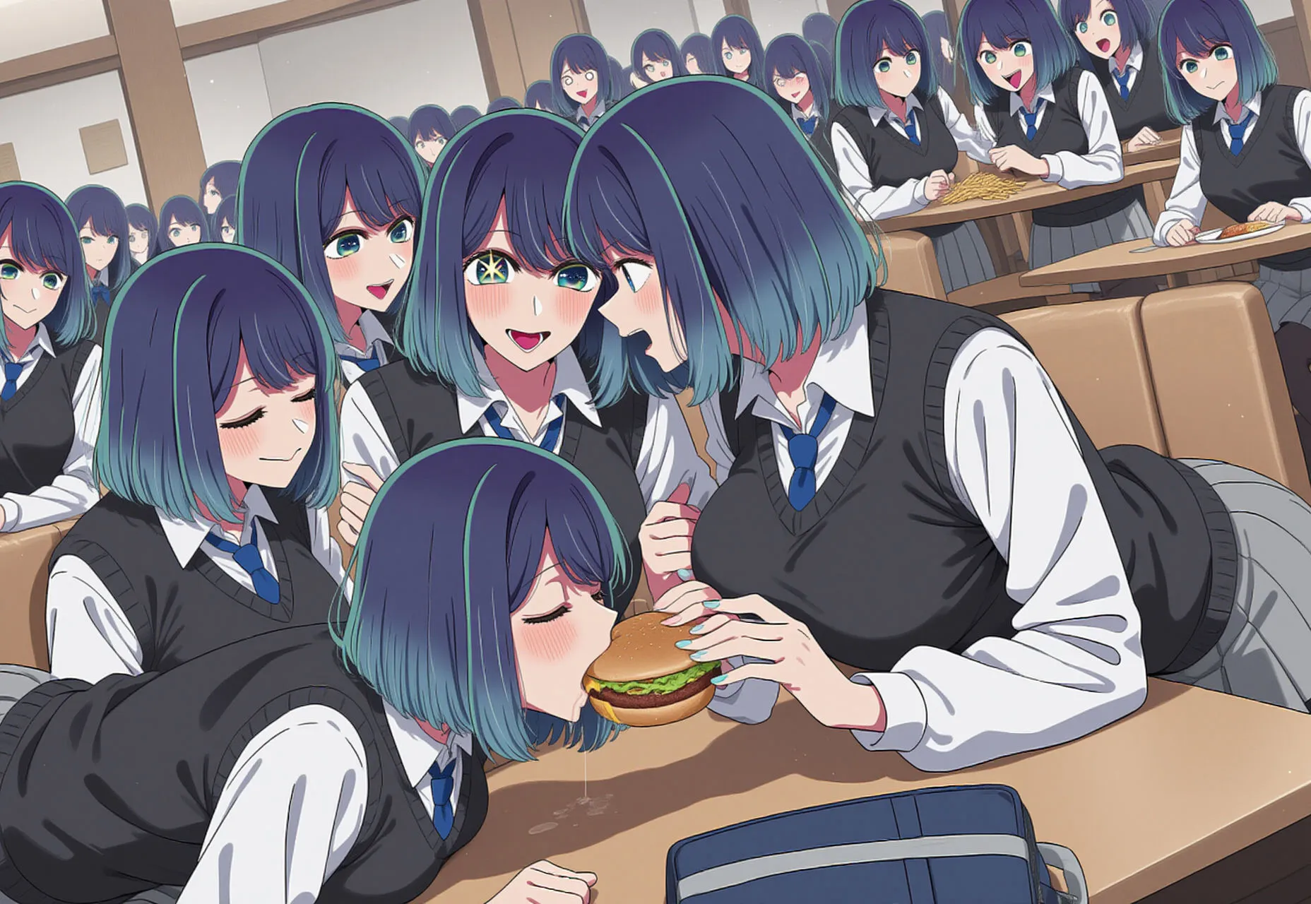 前面のメインキャラはもちろん、背景のモブに至るまで全て同じ容姿に拘りぬいてるよね