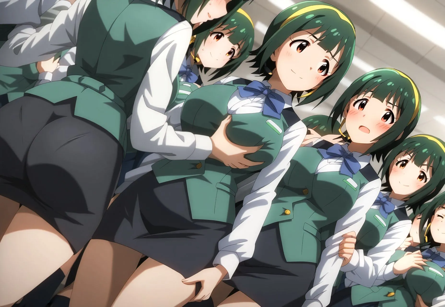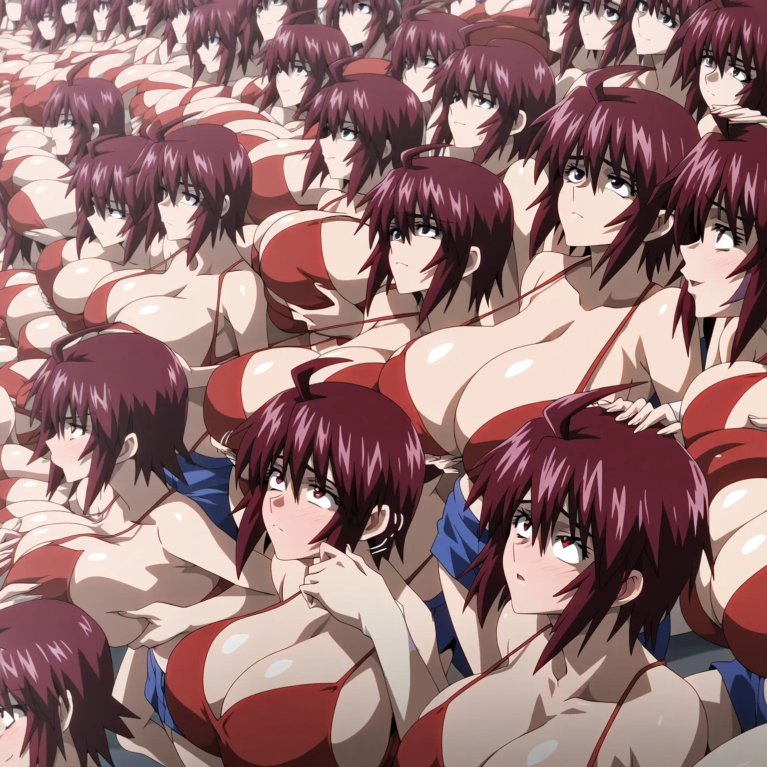 前面のメインキャラはもちろん、背景のモブに至るまで全て同じ容姿に拘りぬいてるよ
