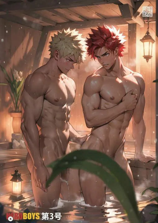 ゲイやBL向けコンテンツで男性フルヌードあり、性器部分はモザイクで処理済みだよ
