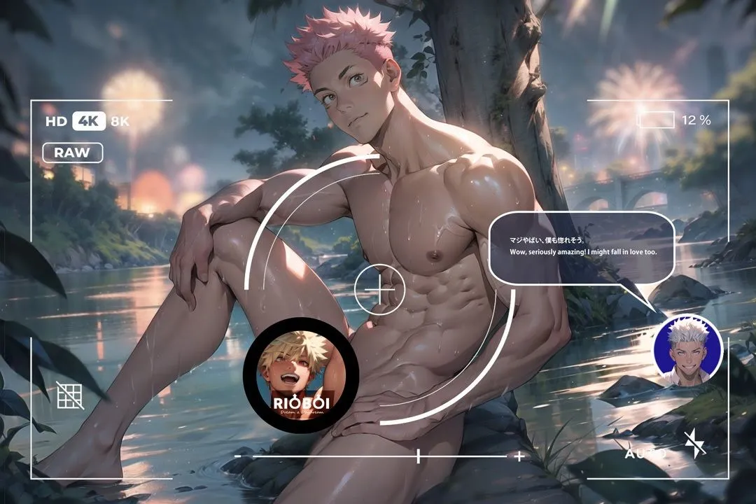 ゲイやBL向けコンテンツで、男性フルヌードあり。性器部分はボヤケで処理済みなのよ