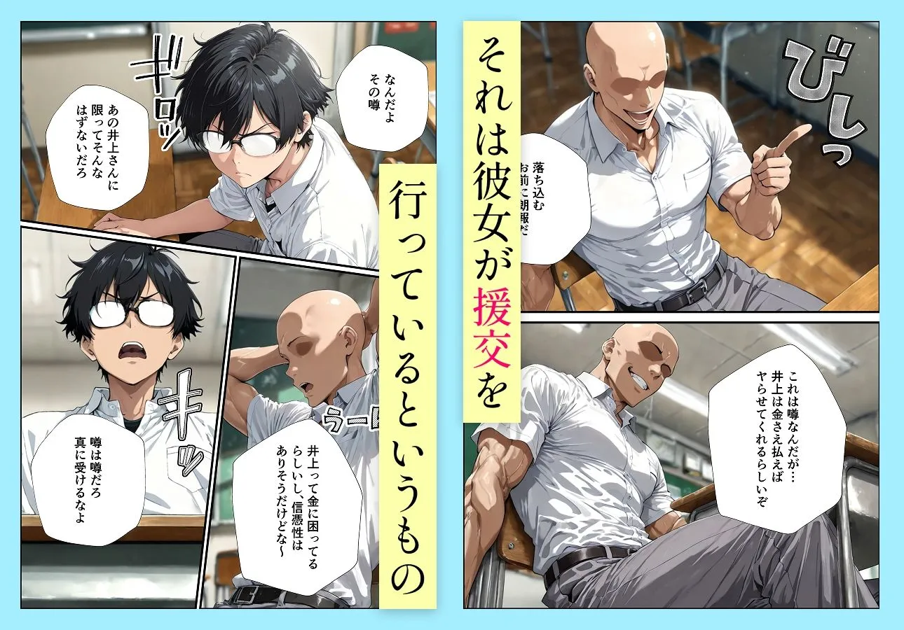 【あらすじ】体験版18pあり。空●第一高等学校に通う生徒ヒロトはクラスメイトの井上織姫に想いを寄せていた。ある日、ヒロトは友人のタクオからある噂を耳にする。それは井上が援交をしているというもの。噂を信じきれないヒロト。そんなヒロトのもとにタクオからプレゼントと称したメッセージが届く。そこに映っていたのはちんぽに奉仕する井上の姿だった。清純さの欠片もなく乱れる彼女の姿を見て、ヒロトは絶句する。真実を知ったヒロトは井上と対面し……。【プレイ内容】フェラ、イラマ、パイズリ中出し、正常位、騎乗位、バック、etc【作品情報】・フルカラーコミック・本編74P+セリフなし74P・ファイル形式JPEG※本作はフィクションであり、登場するすべてのモデルは架空の世界の架空の人間(18歳以上)を描写しています。※AIで画像を生成したあと、加筆・修正を行っています。※AIで生成しているため、一部不自然な箇所が含まれる場合があります。