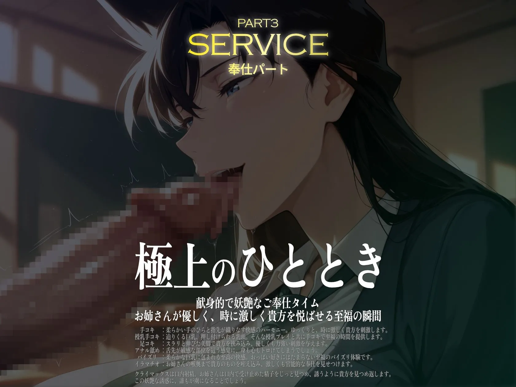 PART3のご奉仕50枚は手コキ、足コキ、授乳手コキ、フェラ、ケツ穴舐め、イラマチオなどを収録。各シチュエーションで射精しまくりなのよ