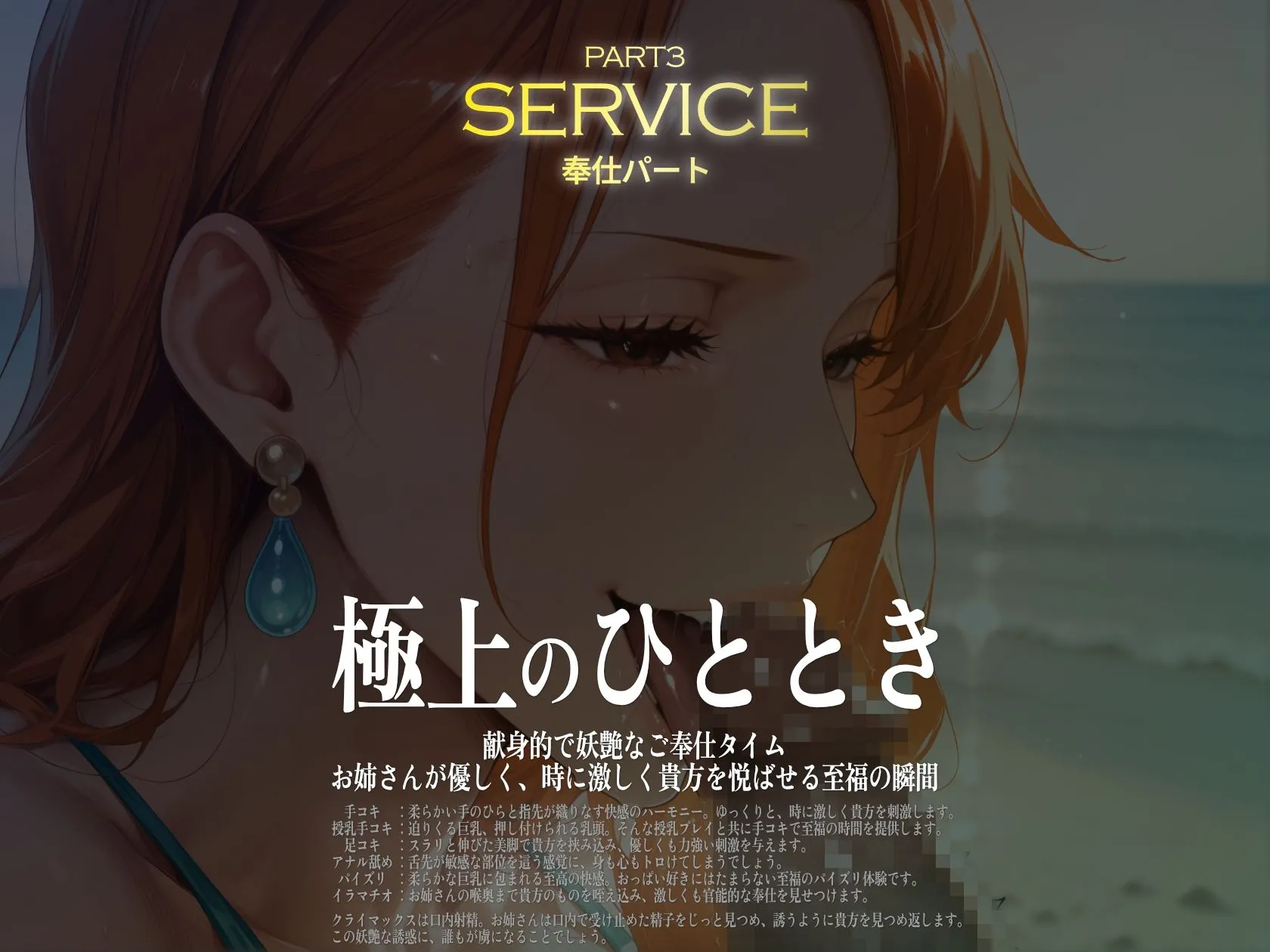 PART3のご奉仕50枚は手コキ、足コキ、授乳手コキ、フェラ、ケツ穴舐め、イラマチオなどを収録で、各シチュエーションで射精しまくりなのよ