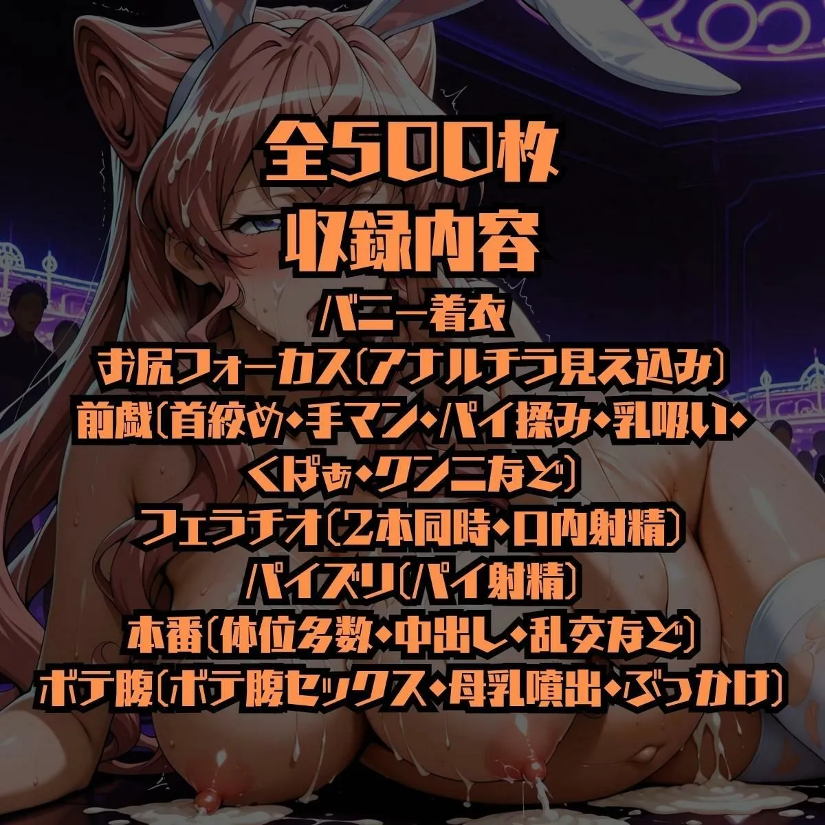 ボテ腹になった後も全く治まる気配のない男たちに更なる辱めを受けるのよ。各キャラ250枚全編バニーコスプレでしょ