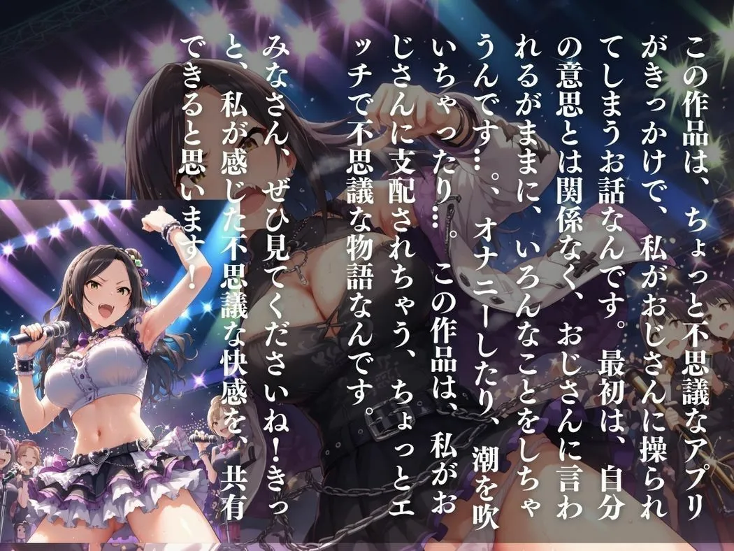 あかねこの作品は『キモ男の暴走アプリと姉御の純情欲望の暴走、止まらない強気で姉御肌な向●拓海』で、元不良のヤンキーアイドルがアプリで支配されて快楽に堕ちるCG集だよ