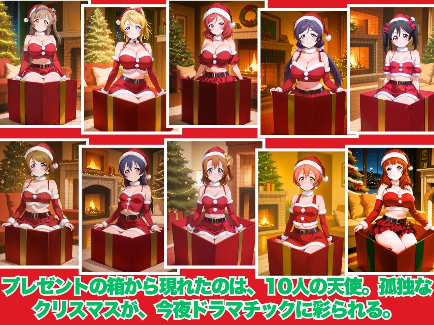 中からサンタコスのキャラクターたちが次々に登場して、オジサンを誘惑するんだ