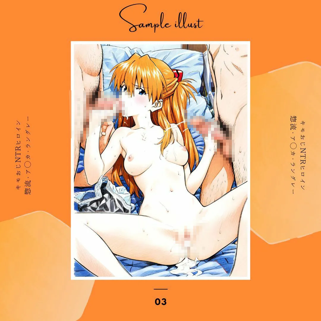 あかねこの作品は題材のヒロインのイラスト集だよ。惣流・アスカ・ラングレーがキモおじ達の絶倫SEXに堕とされちゃう内容なんだ
