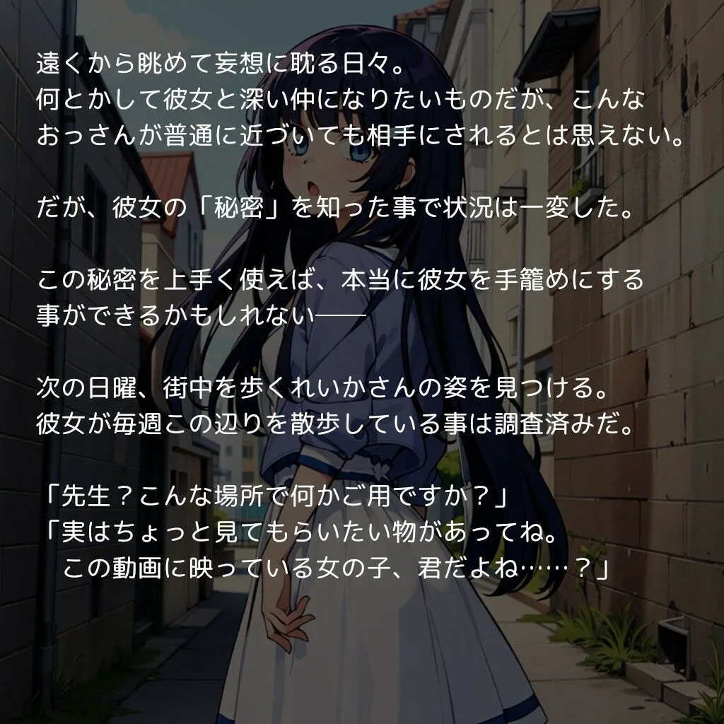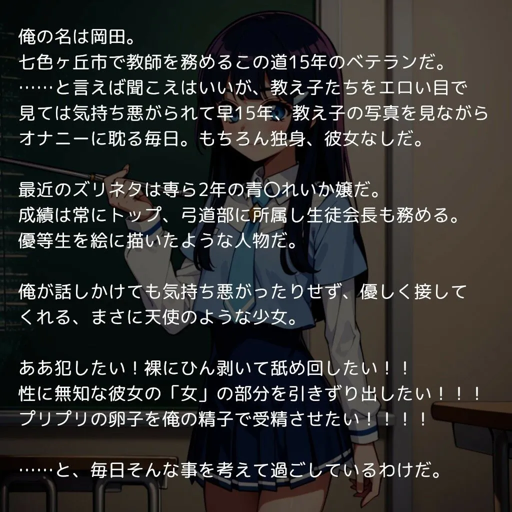 あかねこの作品は七色ヶ丘市の教師・岡田のエロ妄想物語で、教え子の青葉れいか嬢を狙う話だよ