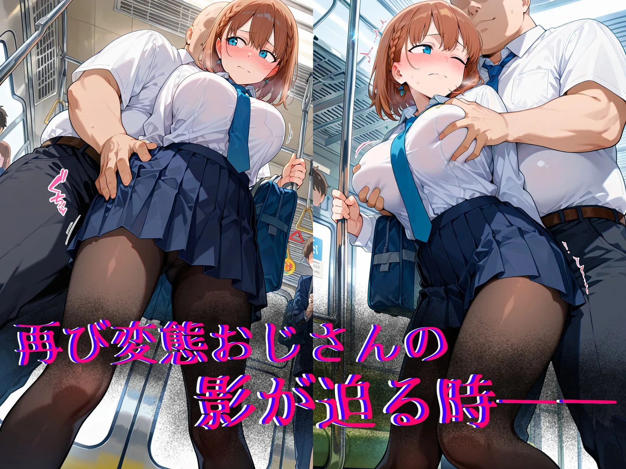 いつもの時間、いつもの電車――。静かに流れる日常は、たった一人の痴●オジさんによって淫らに壊されていく。最初は恐怖で抗うことも出来なかった。でも、いやらしい指先が服の下に触れるたび、カラダは知らず知らずのうちに熱く反応してしまう――。恥ずかしさと快感が交錯し、羞恥で震える体は、抗うどころか痴●に溺れていく。誰にも見られたくないのに、声を押し殺す吐息と熱い体液が、彼女の背徳心を逆撫でする――。恐怖と快楽の境界線が曖昧になる電車内。抗えない背徳痴●の興奮を、臨場感たっぷりのCGで体感できる、極上の背徳エロティック体験をご堪能ください。■流れ没入感を上げるため、ストーリー性を意識した構成となっております。【非エロシーンも数枚ございます。】通常パート→電車内痴●→自宅でオナニー→電車内痴●→路地裏SEX→オジさん宅SEX■行為内容尻もみ、乳揉み、手マン、クンニ、フェラ、パイズリ、正常位、騎乗位、バック、駅弁、中出し、etc…画像サイズ:1024?×?1536(縦画像)ファイル形式:png■収録内容全367p=====================================※本作はセリフなしCG集です。※本作はStableDiffusionを使用した作品となります。※AIによって生成されたため、指などの細かい作画が破綻している場合がありますのでご了承ください。