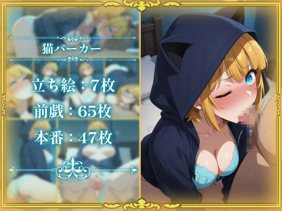 収録内容は制服128枚、メイド服130枚、猫パーカー119枚、フルヌード123枚で合計500枚だよ