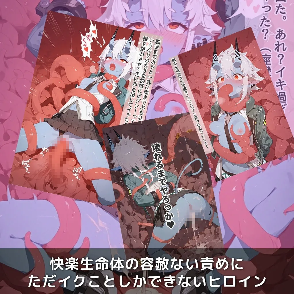 異次元からやってきた’快感生命体’。様々な次元を飛び越える彼らの目的は’全ての女性に究極の快楽を与える’というもの。女性に快感を与えるためにだけに存在する彼らは今日もどこかで見つけた女性に触手を駆使した究極の快感を与えている。しかし快楽生命体が行う快楽行為は一般の女性では刺激が強すぎるためすぐに’壊れてしまう’そこで彼らが目をつけたのが通称’ヒロイン’と呼ばれる個々の世界特有の特別な存在の女性たち。彼女たちは普通の一般女性に比べ不思議と頑丈でその上見た目もSEXにおける身体の作りも極上にできている。まるで神に愛されているかのような存在だ。そんな彼女たちであれば快楽生命体の本気の責めにも耐えることができ、すぐに壊れることがないということで彼らの標的となってしまう。これから今回捕らえたヒロインは徹底的に犯し尽くされ、身も心もボロボロにして完全に心を挫き、自らのおもちゃになるまで快楽地獄を与えられる最初は困惑し、恐怖に怯え、触手の気持ち悪さに身悶えしながらも快楽生命体のいやらしい責めに徐々に身体の内に眠る快楽が引き出されていく…◆シーン1とても形の整った綺麗でえっちなおっぱいを触手でたぷたぷとこねくりまわし、声が甘くなってきたところで、乳首の責めを重点的に行う。乳房の刺激で火照った状態での乳首責めは尋常ではない気持ちよさでコリコリとした刺激を与えると身体をビクンビクンと跳ねさせてついには乳首絶頂(イキ)をしてしまう。◆シーン2快楽生命体の触手からはドロっとした白い液体の「媚薬精子(催淫効果有り)」が出るようになっている。媚薬精子を飲ませるため、ヒロインのプニプニした弾力のある唇を突き抜け、ズブズブと喉奥を遠慮なく触手で突っ込んでいく。ヒロインの唇や舌、口の中の粘膜に至るまで人間の男性を喜ばせるためだけに作られたような作りで、快楽生命体でさえもあまりの気持ちよさにドプドプと予想より遥かに多い精液を発射してしまう。◆シーン3乳首イキや触手フェラによる媚薬投入効果によってヒロインのオマ●コはパクパクと何かを早く入れてほしくて生き物のように動いている。ぶっとくてたくましい触手を一気に膣奥まで突っ込んでやると普通の声とは違う野太い叫び声のような声を上げてビククンと腰を痙攣させてあっという間にイッてしまった。そんなイキたてマ●コも容赦なくジュップジュップと触手を出し入れさせる。奥に触手が到達するたび、身体が跳ねてイッているのが分かる。雑魚マンコのポルチオを触手の先端でグリグリとしたり、振動させてやると膣壁からドロロっとしたエッチなお汁が止めどなく溢れてくるのが分かる。もはや意識も混濁し、頭が真っ白になりながらヒロインとは思えない獣のような悲鳴を上げながら強烈な絶頂を繰り返す。◆シーン4ヒロインのイキまくりのマ●コは信じられないほど気持ちよく、こちらもまた大量の精子を子宮の中にゴボゴボと溢れるほどぶち込む。いわいる’中出し’という行為でヒロインは未知の快感にのたうち回り、声にならない声を上げながら仰け反ったまま絶頂を味わっている。◆シーン5人間相手のオスでは決して与えることができない快感を一度に受けてしまって脳はショックをおこし意識は飛んでしまっている。しかし快楽生命体の責めはこれだけでは終わらない。一般女性ならここで完全に’壊れて’しまうが、さすがヒロイン。気絶だけで済んでいる。快楽生命体もやっとボルテージが上がってきて、ここで壊れないヒロインを見てとても興奮したようです。ヒロインがどこまでやれば壊れるか触手の本気の責めが始まります。休むことはなく、常に注がれる媚薬精液、止まらないピストン。体中の性感帯を触手の一気責めにヒロインは気絶と覚醒を繰り返し、赤子のように泣いては止まらない絶頂にビクンビクンとまるで電気ショックを与えられてるかのように痙攣しまくっています。◆シーン6快楽生命体の責めが終わった頃に、あと少しで●んでしまいそうなほどのぐちゃっとしたヒロインの姿があります。快楽生命体も今日はさすがに疲れたようなので今回はここまでみたいですが、どうやら明日以降もイカせまくるようです。やはり女性が快感で壊れてしまう姿を見るのが好きなだけの変態生命体ですね。◆シーン7快楽生命体は次の日も当然ヒロインを犯し尽くします。あまりの強烈な快楽に痙攣し、身体は跳ね、ドロドロになったオマンコは昨日のことを思い出しSEXが始まる前からヒクンヒクンと反応し、空気が身体に触れるだけでピクンと小さくイッてしまう。しかし昨日と違うのは、快楽生命体が「コスプレ」というものをして行うエッチに興味津々なことだった。ニーハイ、猫の手グローブ、猫耳、首輪など、ヒロインが普段は絶対にしないであろう恥ずかしくてエッチなコスプレをさせて、欲望のままヒロインに快楽を与える。恥ずかしさと気持ちよさが入り混じった