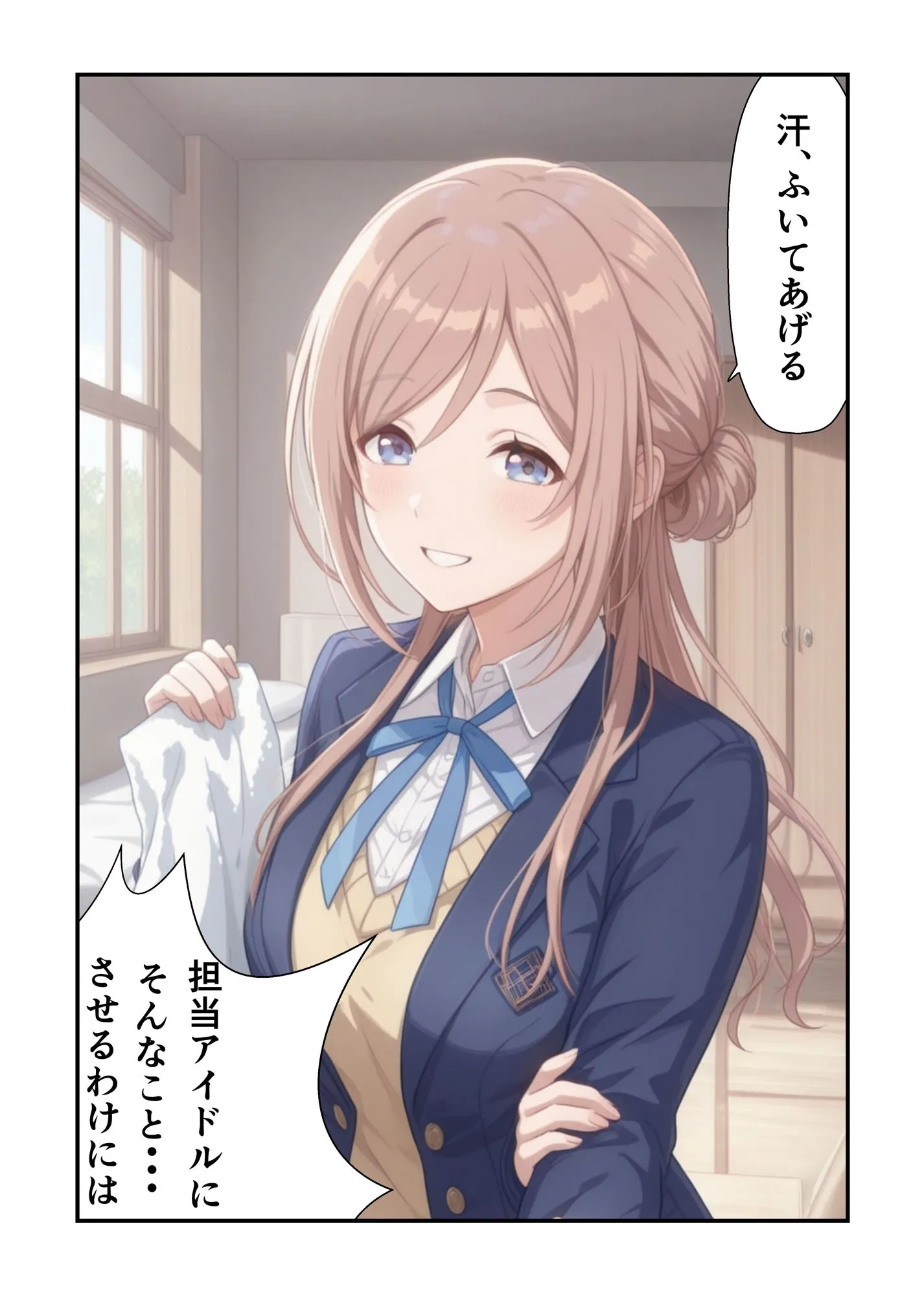 ある日過労で倒れたプロデューサーを心配して、莉波が身体を拭いてあげたりおかゆを作って看病する話なんだよ