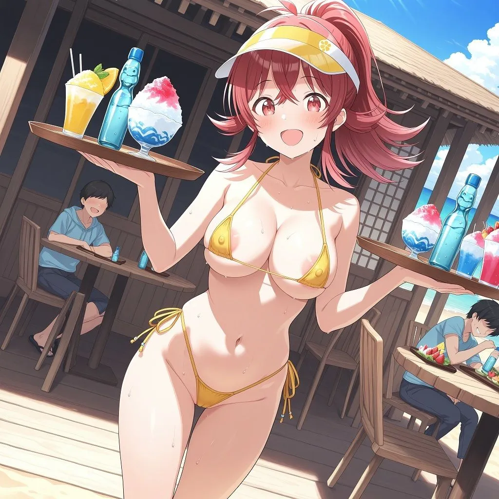 小宮果穂が不本意ながら海の家で働き、裏サービスとして性的サービスを強要されるイメージのCG集だよね