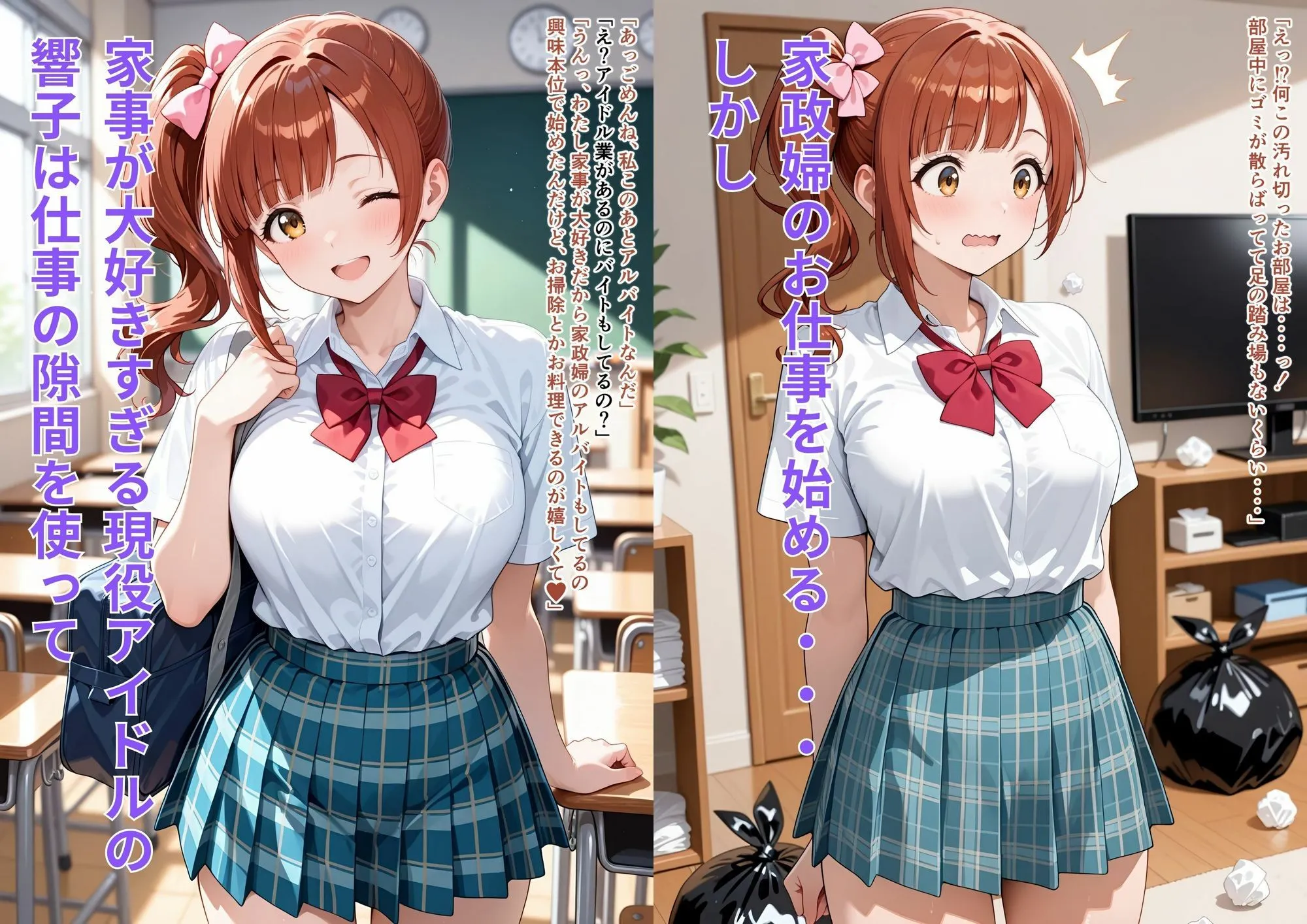 【あらすじ】家事が趣味というほど大好きな現役アイドルの響子は、アイドル業の傍ら家事がしたいという強い思いだけで家政婦のアルバイトを始める。アイドルを始めてからは家事をする機会が少なくなっていた彼女にとって家政婦は最高の仕事場だった。そんなある日、彼女が家政婦として向かった家はとんでもなく汚くゴミだらけの家だった。住人の中年男性は会社をリストラされて失望の中にいて、家事どころじゃなかったいう。なんとかしてあげたいと思った響子は、ボランティアでその家で家政婦として家事をすることを決意し、毎日のように男の家に行っては家事をこなすのだった。二人は日を重ねるごとに打ち解けていって、男も前を向いて生きていけるようになっていくのだった。しかしそんな中で、響子の可愛さに少なからず興奮してしまった中年男性は生理現象を響子に見られてしまう。必死に弁明する男だったが、なぜか響子はその責任を自分が取ると言い出す…果たして響子と男の関係はどうなってしまうのか…お楽しみにっ!【作品情報】・フルカラーCG集500P(導入やシーンの移り変わりにはセリフ、行為のシーンではセリフと擬音が入っております。)【内容】・寝室でご奉仕プレイ(フェラ、口内射精、ごっくん、騎乗位、対面座位、ディープキス、アクメ、正常位、中出し、など)・下着でプレイ(前戯、手マン、胸揉み、潮吹き、後背位、など)・裸エプロンでおねだり(尻揉み、立ちセックス、台所、誘惑、正常位、イキまくり、オホ声、など)・ラブラブ濃厚交尾(パイズリ、顔射、イチャラブ、ハッピーセックス、断面図、中イキ、中出し懇願、など)その他にも様々なシチュエーションを掲載しておりますので、是非ともお楽しみください!※本作品は主にAIを使用して画像を生成しております。