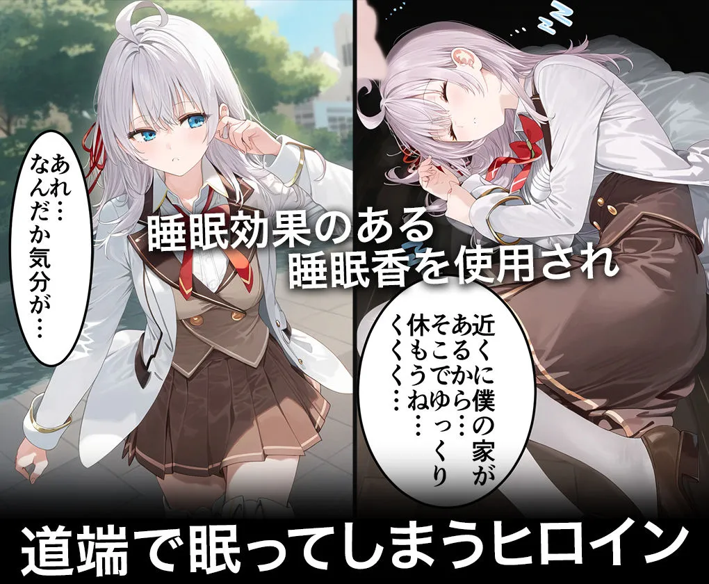 あかね街中で新たなターゲットを探す連続調教師の男の前に現れたヒロインを狙いを定めた連続調教師は睡眠効果のある睡眠香でヒロインを眠らせてしまうよ