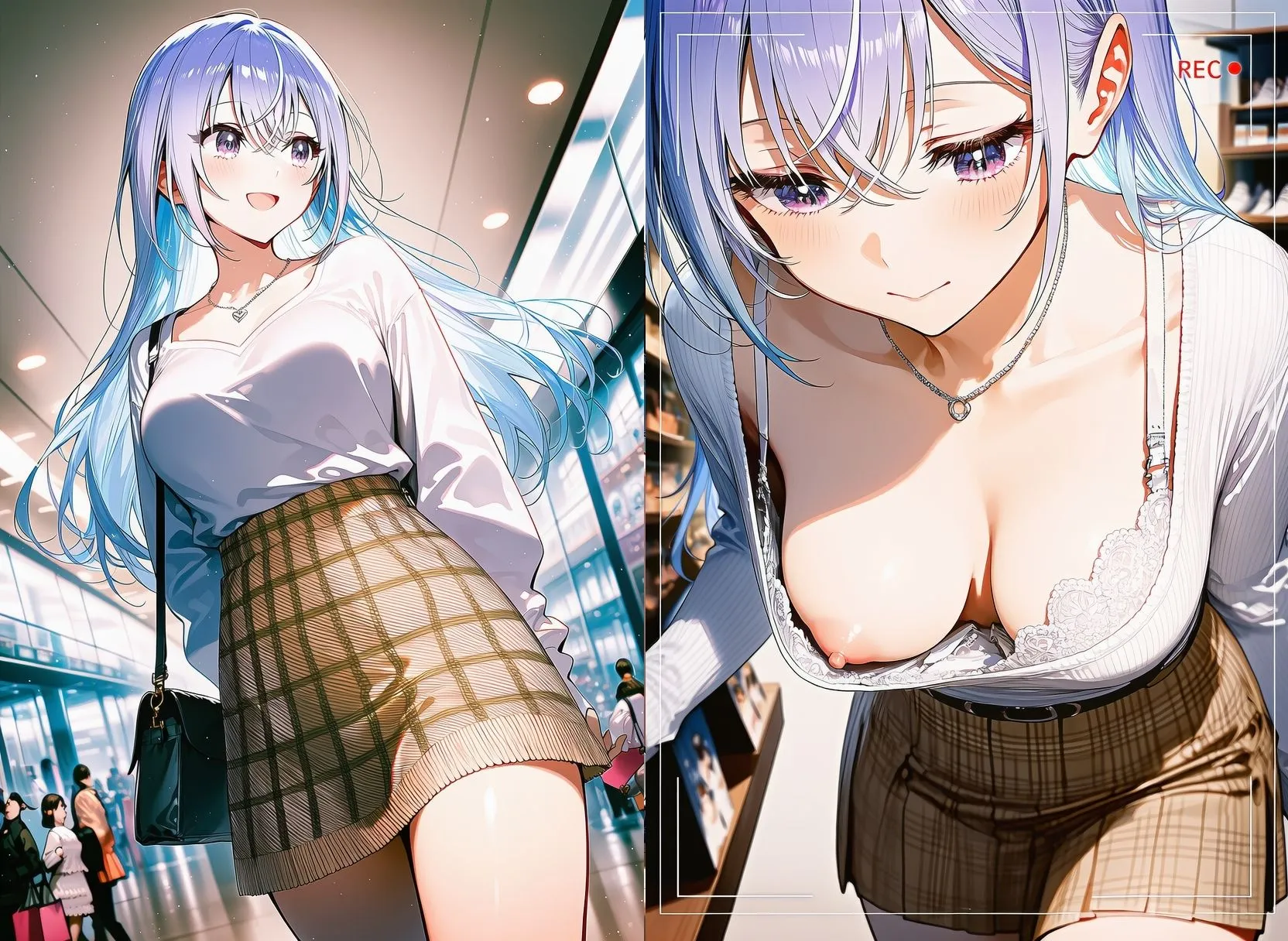 次は『お買い物』68枚、ショッピングモールでの無防備な買い物を盗撮し続けられて、最後には更衣室に押し込まれてレ〇プされてしまうんだよ