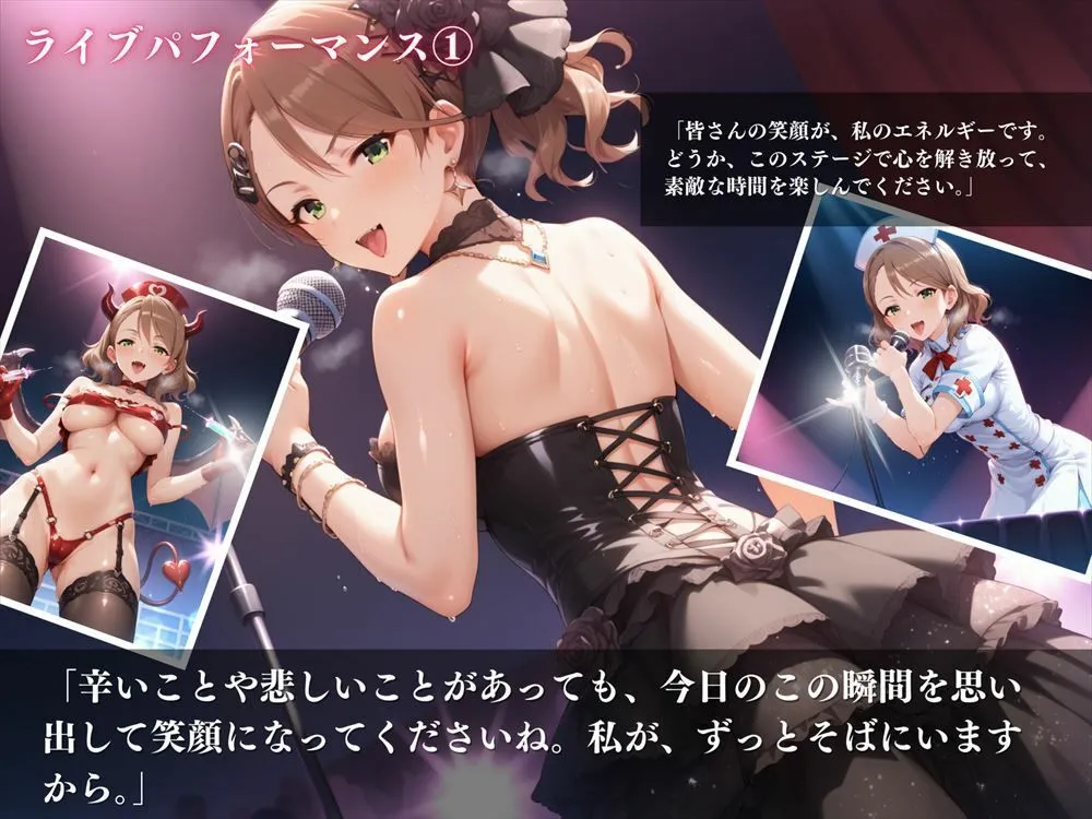 その眼差しにドキッとしながらも、彼女の気遣いと優しさに惹かれていくよ。アイドル活動だけでなく看護師のスキルで心身の健康をサポートするんだ