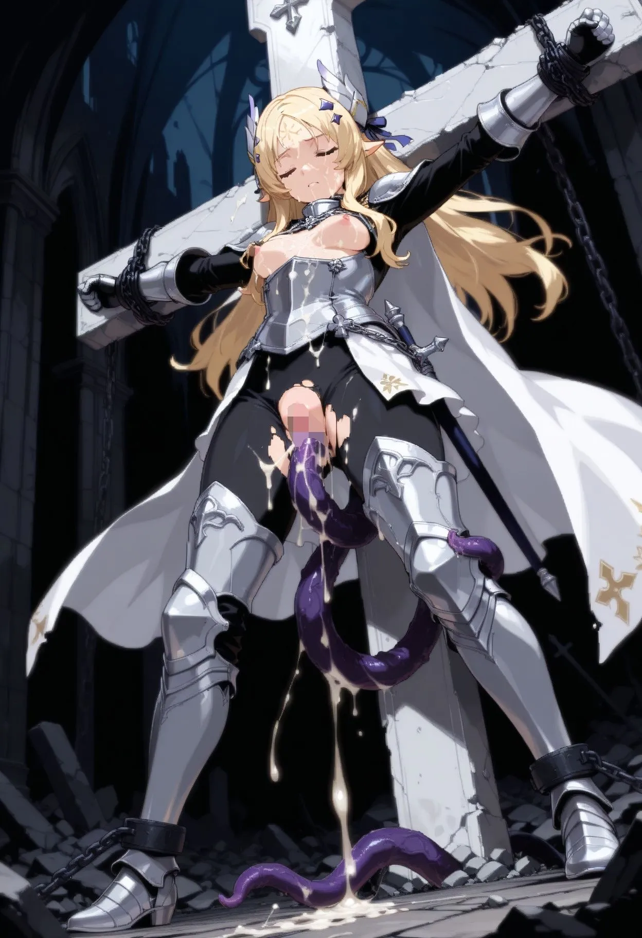 聖衣を剥がされて神の象徴たる十字架に縛り付けられたまま、暗く淀んだ地下聖堂で触手たちに躰と心を蝕まれていくわ