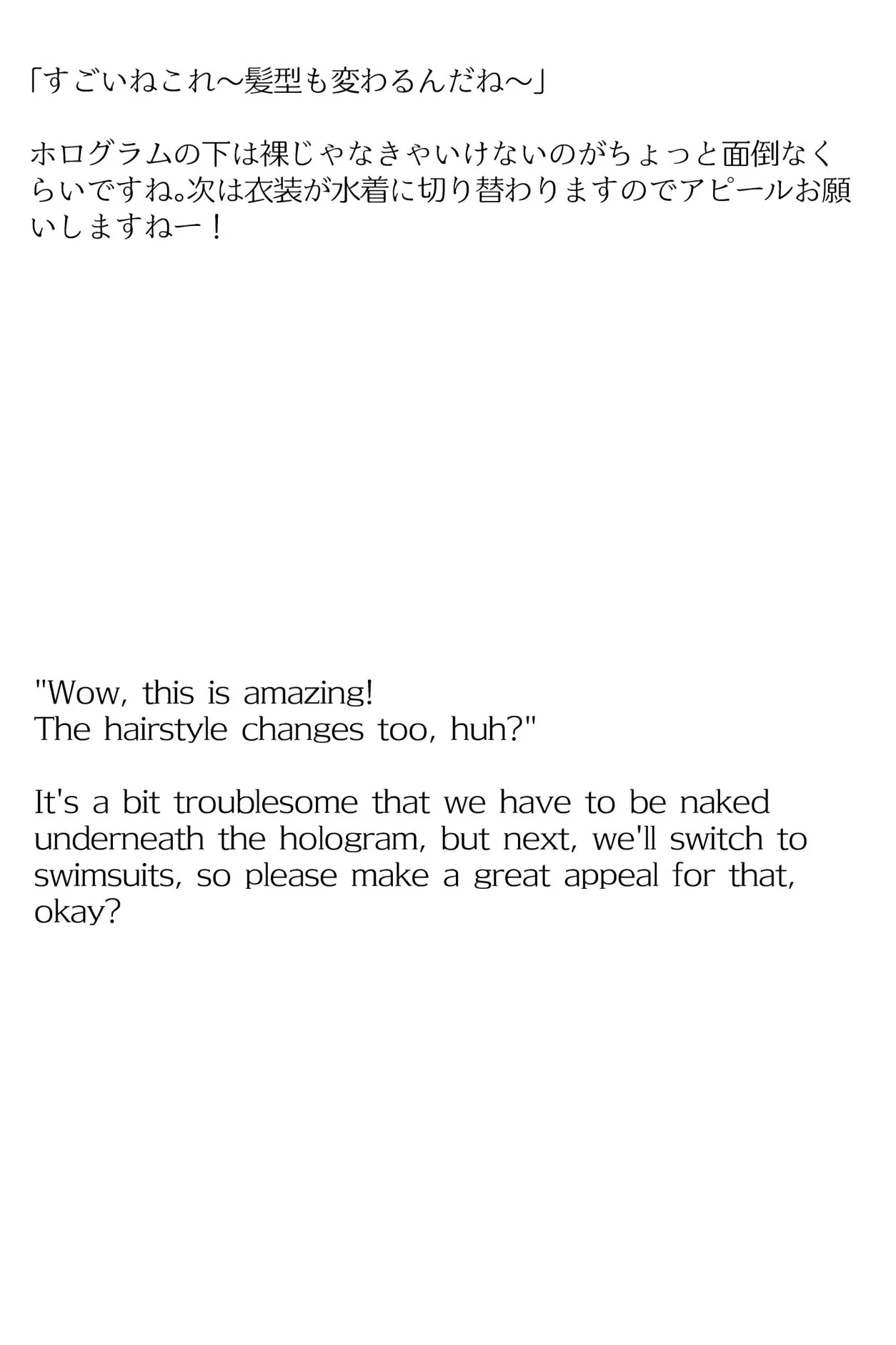 お話概要は、バーチャル衣装が故障して皆の前で全裸になってしまったけど、それは自分から見た時だけみたい