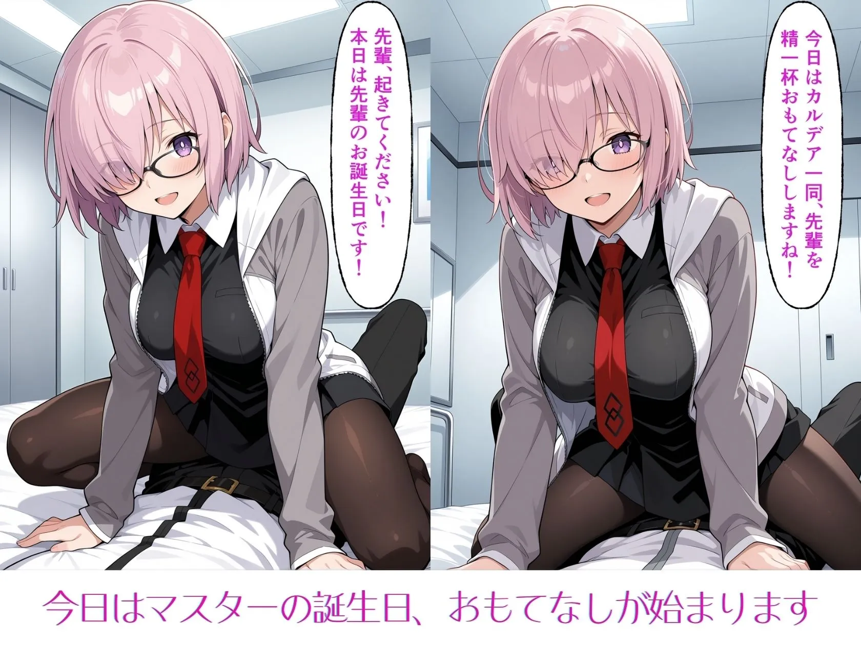 本日はマスターの誕生日で、各サーヴァントがマスターとイチャツキ、淫らなセックスをする内容なのよ