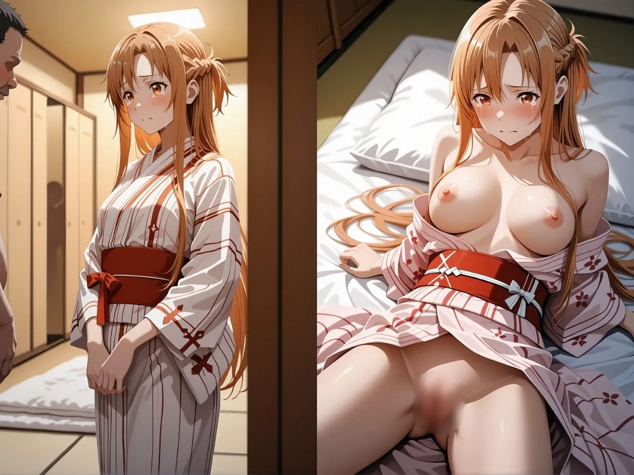 温泉パートは着替え→入浴→乳揉み→イマラ→手こき&フェラ→本番→中〇し→精子漏れ→逃亡→緊縛→再イマラ→緊縛本番→中〇しよ