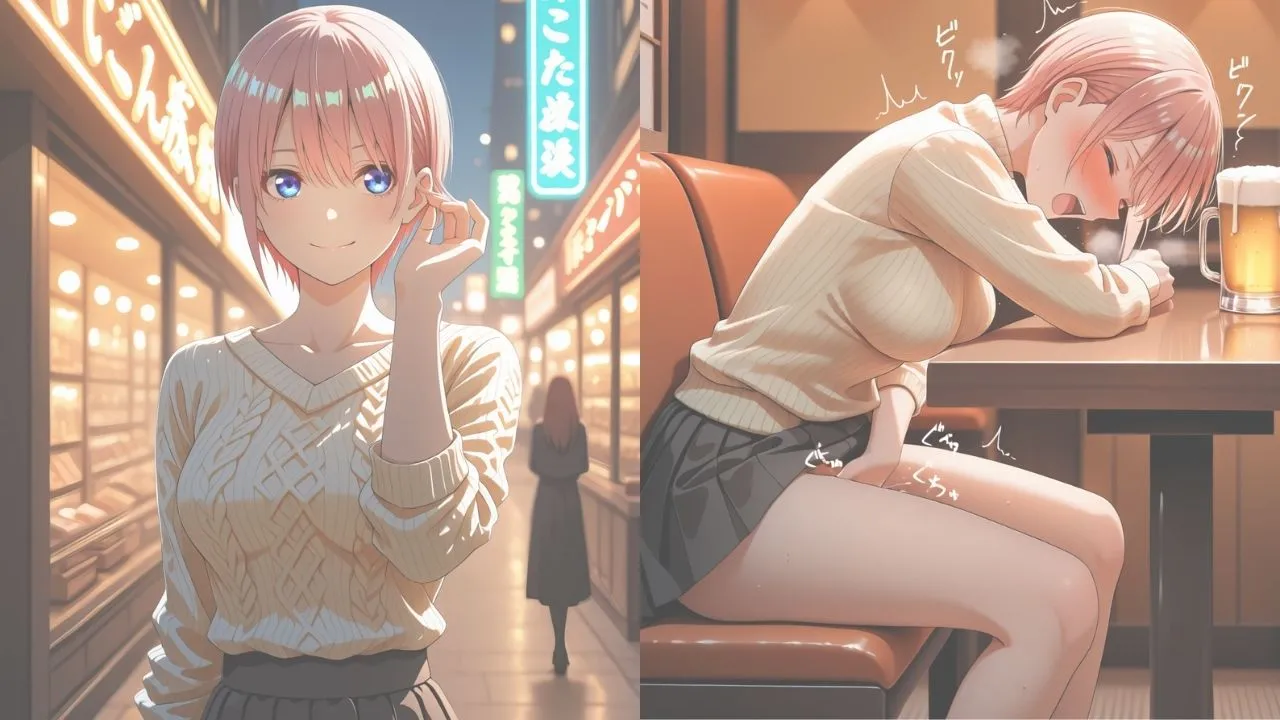 ※サンプル画像では、モザイクを強めに処理しておりますが、本編ではよりクリアで細部までお楽しみいただけます。※アナル描写につきましては、本編では修正をかけず、そのまま収録しております。ミダレ。抗えない快楽に沈めたい〜酔いと秘密が溶け合う、夜の一幕〜これは、誰もが胸の奥で願う‘抗えない瞬間’を丁寧に描くシリーズ最新作。五つ子の長女を思わせる大人びた美女・○花。合流した瞬間から「彼女」か「大人の友達」のような距離感で始まる夜。居酒屋で酔いと催◯が重なり、彼女の理性が少しずつ溶けていく──。近づく身体、赤く染まる頬、誘惑するような視線。トイレでは抑えきれない衝動が爆発し、そのままホテルへ移動して大人の時間を思うままに堪能。普段は余裕のあるお姉さんなのに、あなたの前でだけ‘痴女’へと堕ちていくギャップを収録しています。▼収録内容・居酒屋(酔い/催◯導入/見せつけ/オナニー)・トイレ(フェラ/イラマ/放尿)・ホテル(前戯/ディルド/挿入/射精/余韻)総367枚。酔いの熱気、催◯で崩れる表情、乱れる呼吸まで丁寧に描写。○花の‘誰にも見せない夜’を、余すことなくご堪能ください。※本作は、人気作品『五等分の花嫁』の登場ヒロインをモチーフとした二次創作パロディ作品です。原作および公式関係各社とは一切関係ございません。※本作品はAI技術を使用して制作されています。※AI生成の特性上、実在の人物・キャラクター等に類似して見える場合がありますが、それは偶然の一致であり、意図的な再現ではありません。※技術的制約や学習データの影響により、画像の一部に不自然な箇所・破綻が含まれる場合がございます。購入前にその点をご理解・ご了承の上ご検討ください。※販売は予告なく中止・変更となる場合がございます。あらかじめご了承ください。※購入後のデータ管理・利用に関しては、購入者様の自己責任でお願いいたします。※本作品の商用利用・転載・再配布・第三者への譲渡等は禁止しております。これらの行為が確認された場合、法的措置および損害賠償請求を行う場合がございます。※登場人物はすべて成人設定であり、作中の衣装・シチュエーションはコスチュームプレイの演出です。