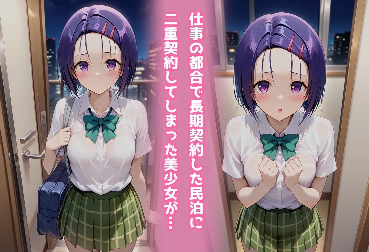 【あらすじ】長期滞在のために契約した民泊。家具も揃い、静かに過ごせるはずの空間に――ある日、見知らぬ美少女がバッグを持って現れた。彼女は春菜という名前らしい。彼女の口から告げられたのは「自分もここに長期契約した」という信じがたい事実。管理者は海外在住、サポートは返事も遅く、解決の目処は立たない。途方に暮れていると、彼女は涙目で懇願する。「他に行くところもないんです……何でもするので、ここに住ませてもらえませんか?」こうして奇妙な‘二重契約’トラブルは放置されたまま、避けられない二人きりの同居生活が幕を開ける――。【プレイ内容・シチュエーション】部屋に来たところからリビングに通して、キッチン、シャワー、ベッドとそれぞれのシチュエーションで着衣からヌードでの行為までストーリー性のある画像の詰め合わせになっています。・パンチラ・胸チラ・乳揉み・フェラ・イラマチオ・口内射精・立ちバック・片足上げ挿入・座位・正常位・騎乗位・後背位・中出し・添い寝etc…【基本情報】作品形式:フルカラーJPG画像ファイル500枚(セリフ及びモノローグページ10枚込)画像サイズ:1664px×2432px【注意事項】※本作はStableDiffusionを使用したAI生成画像を厳選し、加筆・修正した作品となります。※AIで生成された画像は、実在の人物・キャラクターに類似している場合がありますが、それは偶然の一致であり、一切関係がありません。※技術的な制約やAIの学習データによって、細部に破綻や不自然さが含まれる場合があります。購入前に、そのことを理解し、同意した上で購入を検討していただくことをお願いいたします。※被写体は全て成人しており、コスチュームでのプレイとなります。※AI作品にご理解のある方のご購入をお願いします。