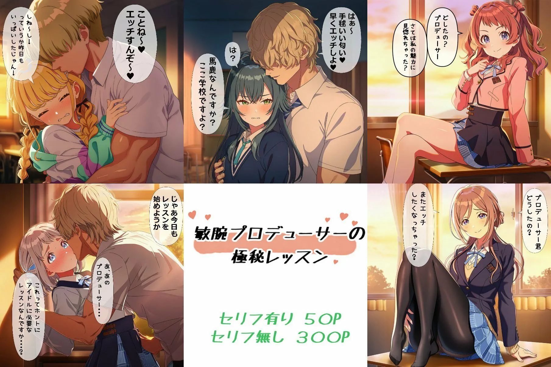 本作は敏腕プロデューサーがプロデュースと称して5人の美少女とヤリまくるCG集だよ。一部の女の子は自分以外とはSEXしていないと思い込んでるから、バレたら●されるかも。特に緑なの