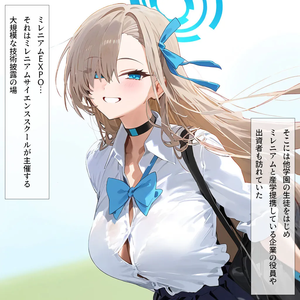 あかねミレニアムEXPOはミレニアムサイエンススクール主催の大規模技術披露の場で、他学園の生徒や産学提携企業の役員、出資者たちが訪れてるよ