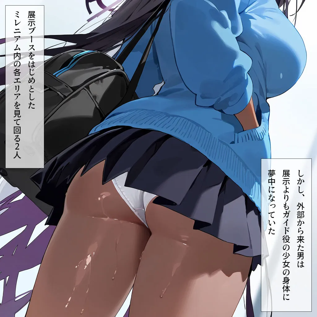 HシーンはミレニアムEXPO特別ガイド編で、尻揉み、胸揉み、フェラ、パイズリ、足コキ、尻コキ、オナニー、セックスがあるわ