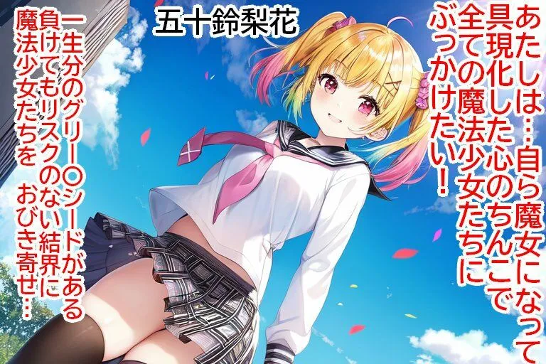 常日頃から心のチ〇ポで魔法少女達にぶっかけたいと考えていた五十鈴梨花がキュウバアに契約して願った作品なのよ