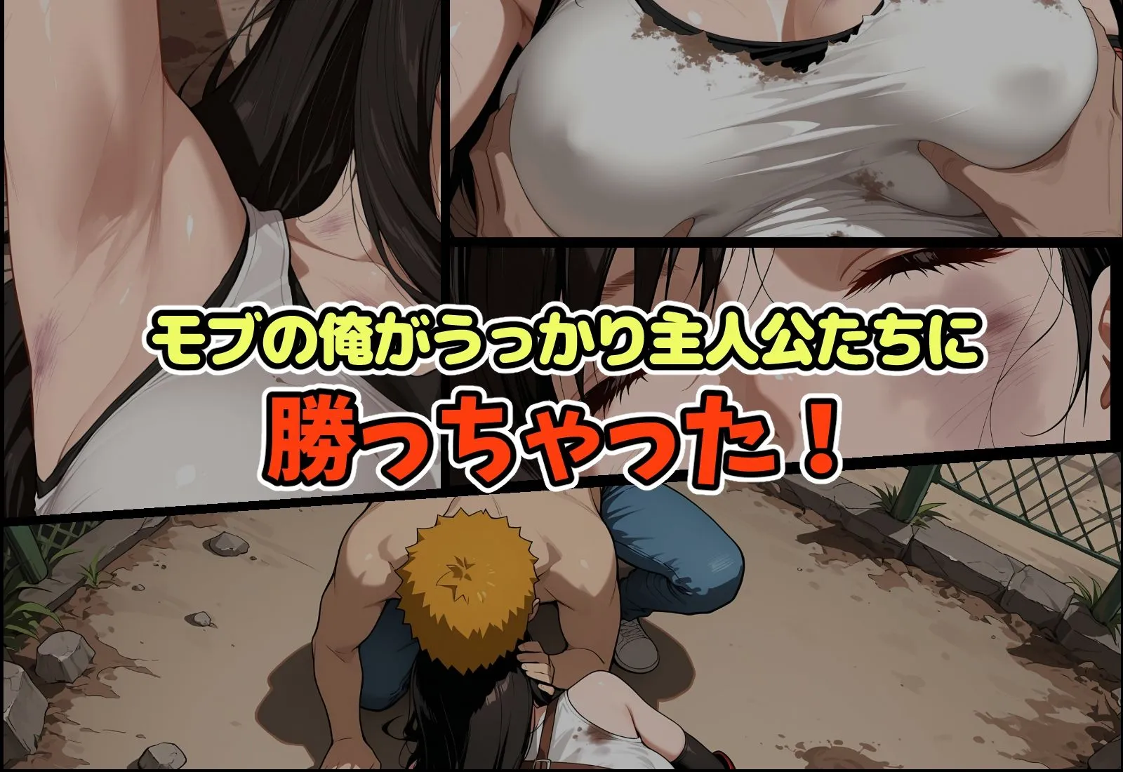 おいおい……嘘だろ。マジで信じられねぇ。タダのチンピラの俺が、アバ〇ンチの野郎どもに勝っちまったよ。無我夢中で攻撃してただけだぜ?気が付いたら、こいつらみんなくたばってた。ストーリー上、俺がぶっ飛ばされる流れだろ。逆だろ、逆!思わず戦闘に勝ってしまった、物語上『敵』である俺。美女が無防備に転がっているのを見たら、心臓がドクドク鳴り響いてきやがった。罪悪感?そんなもん、あるわけねーだろ。こんなチャンス逃すかよ。ーーーーーーーーーーーーーーーーファ〇ナルファ〇タジー7のテ〇ファの物語です。気を失っているテ〇ファの体を触ったり、匂いを嗅いだり、好き放題しちゃいましょう。一通り楽しんだ後は蘇生させて、弱みを握ってもう一度楽しみましょう。本編:148ページ文字無し版あり解像度:2432×1664※本作は生成AIツールで作成したAI画像に加筆修正を行った作品です。※本作はSDXL派生モデル(Illustrious)を使用しております。※AIによる画像生成で作成されているため、細部に破綻や矛盾が生じている場合がございます。※本作で描かれるシチュエーションは全てフィクションであり、登場する人物や設定等は架空のものです。また犯罪、その他違法行為を助長する意図はございません。