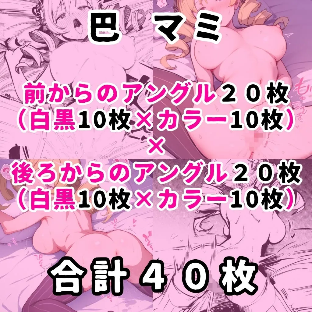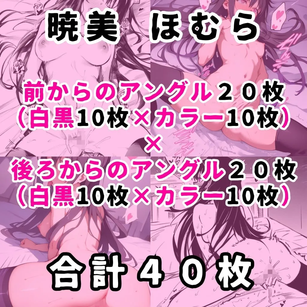 収録シチュは1つ目、ベッドの上で仰向けになりながら手を使ってマスターベーションで、1キャラ白黒10枚カラー10枚ずつの合計20枚なんだけど