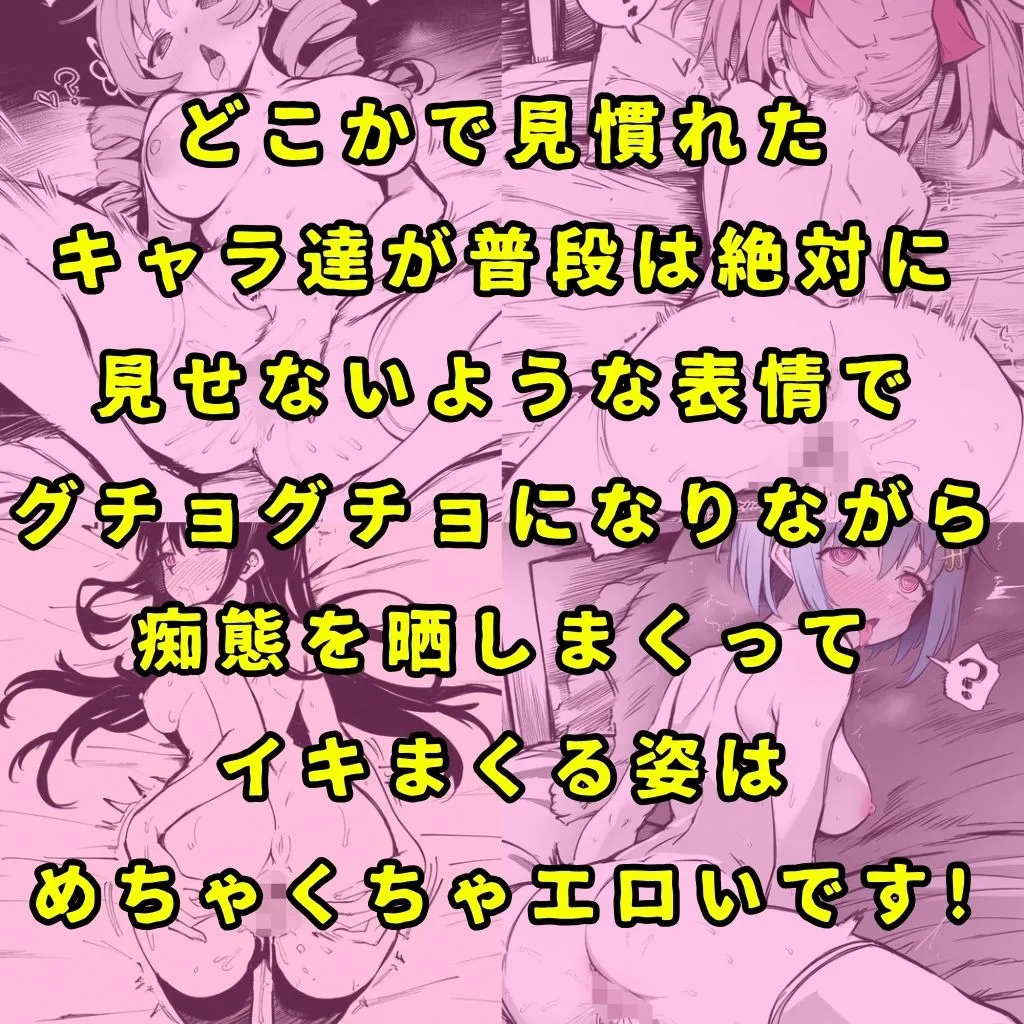 理由も分からないままドロドロのグチョグチョになって無限にイキ続ける設定で、普段どこかで見たことあるキャラ達が強烈な快感でイキまくってる姿は興奮間違いなしでしょ